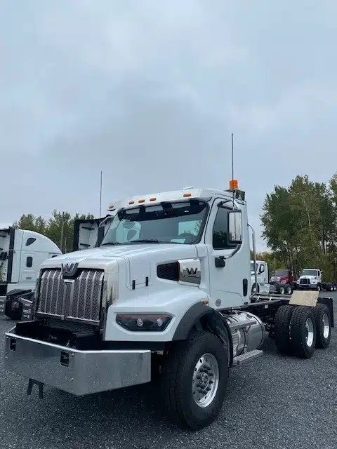2026 Western Star 47X essieu reculé (set-back axle), moteur Detroit Diesel DD13 (505 hp, 1 850 LB/FT), transmission automatique Allison 4500RDS, prêt à recevoir un PTO, batteries montées dans la cabine, freins à disque, réservoir à carburant 80 gallons, différentiels full lock, 10 roues en aluminium avec pneus Michelin, siège chauffeur avec suspension à air, chauffant et climatisé. N’hésitez pas à communiquer avec un de nos conseillers aux ventes pour plus d’informations.
