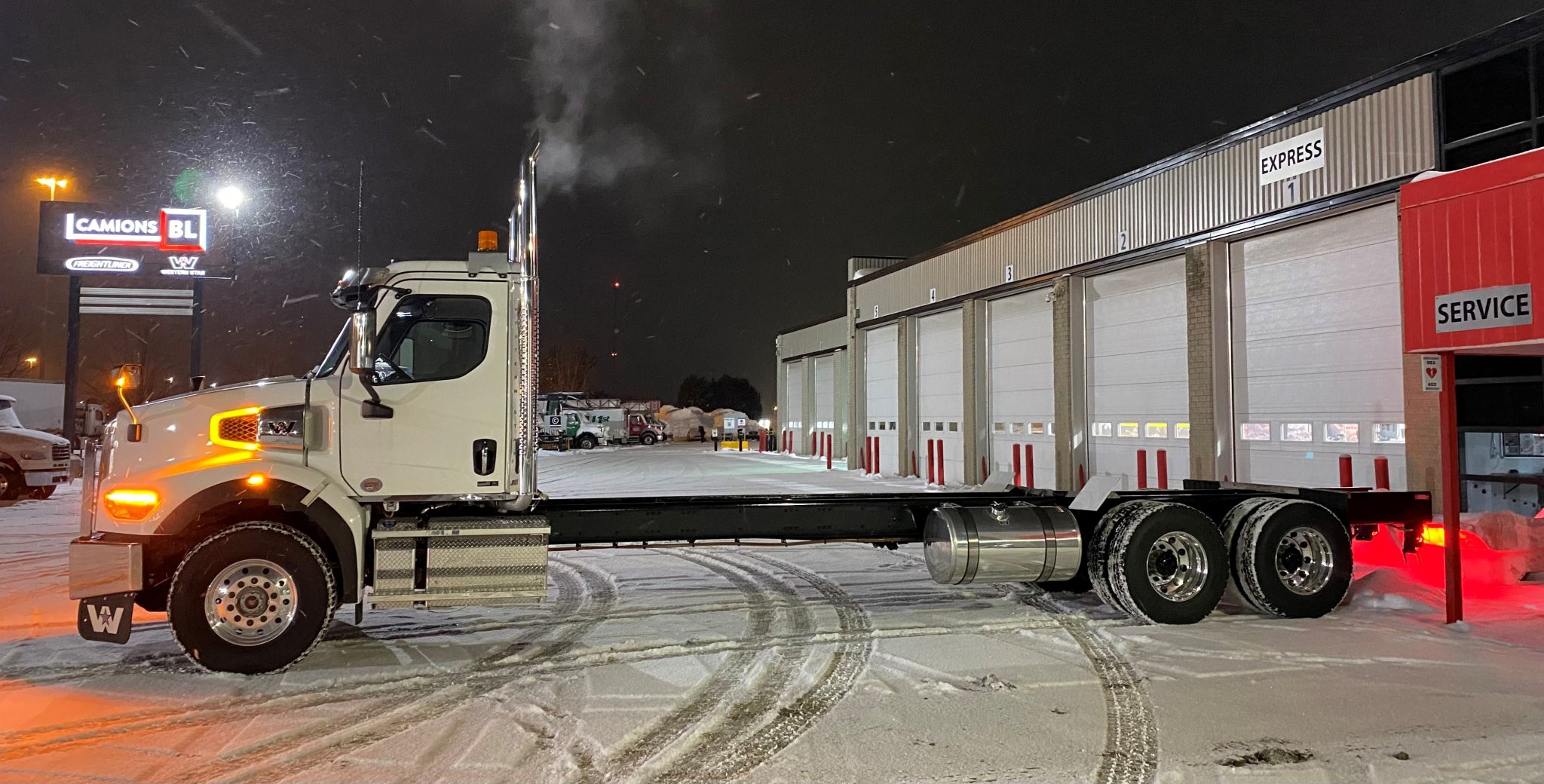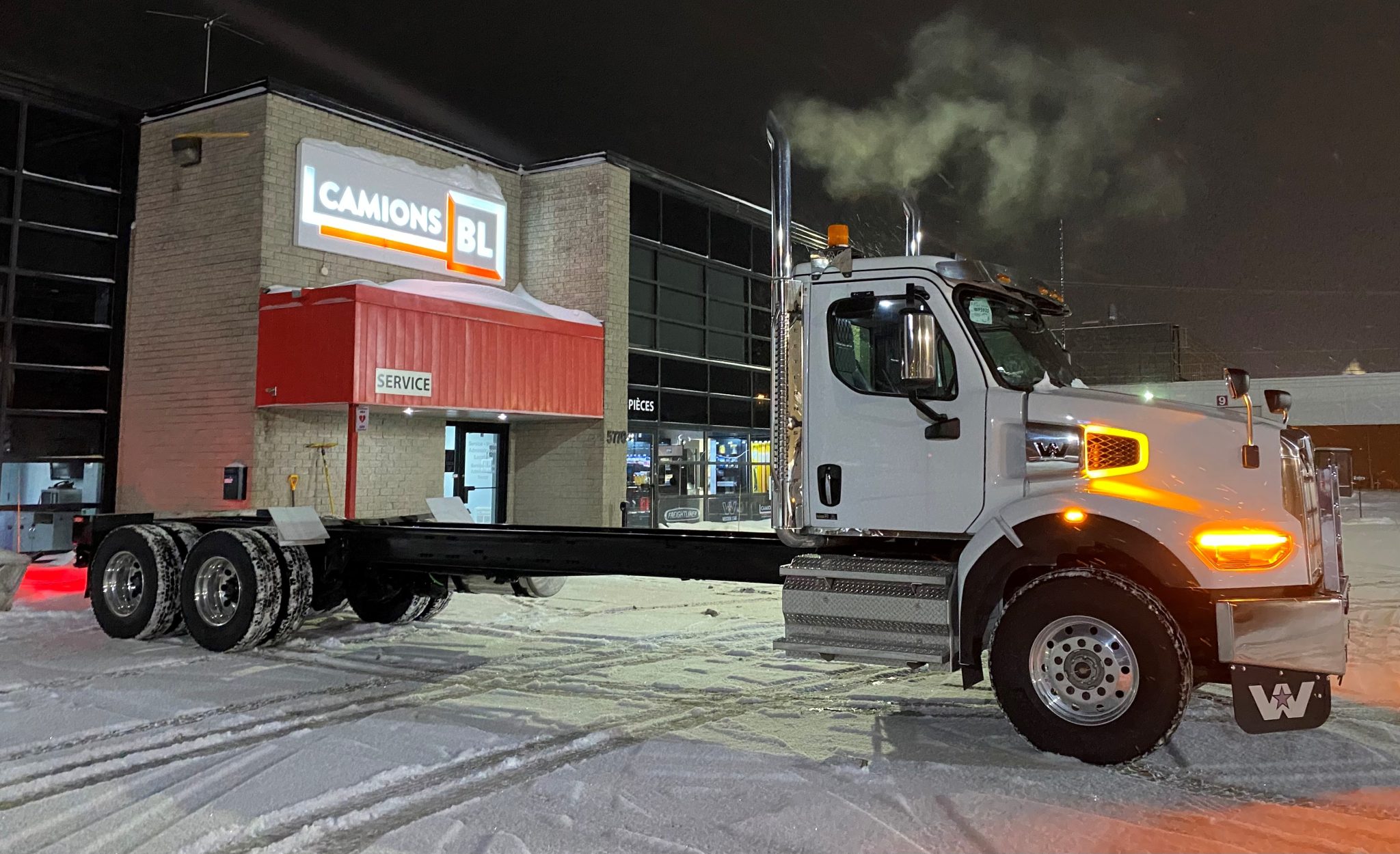 2026 Western Star 49x essieu reculé (set-back axle), moteur Detroit Diesel DD16 (560 hp, 1 850 LB/FT), transmission automatique Allison, freins à tambour, différentiels full lock, réservoir à carburant 100 gallons, roues en aluminium chaussées de pneus Michelin. N’hésitez pas à communiquer avec l’un de nos représentants aux ventes pour plus d’informations.