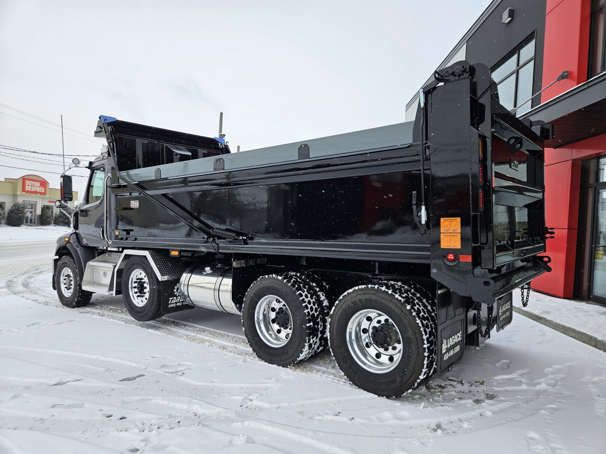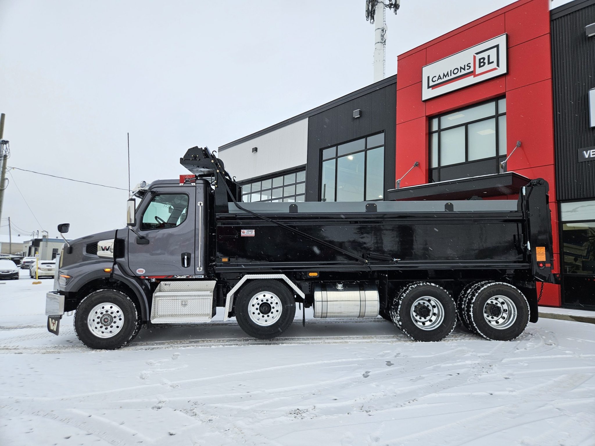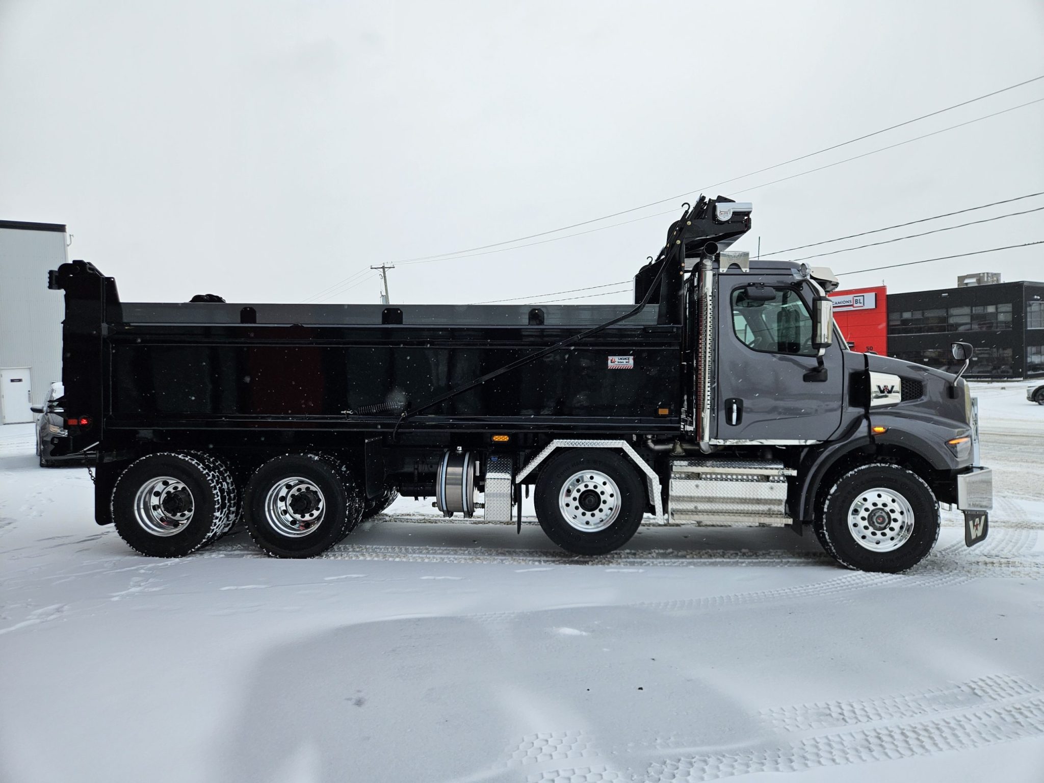 2026 Western Star 47x essieu reculé (set-back axle), moteur Cummins X12 (500 hp, 1 700 LB/FT), transmission automatique Allison, freins à tambour, différentiels full lock, réservoir à carburant 100 gallons, roues en aluminium chaussées de pneus Continental, batteries montées dans la cabine, siège conducteur avec suspension à air, chauffant et ventilé. Ce camion est équipé d’un essieu relevable Tardif et fils, d’un coffre marchepied sous la cabine et d’une benne basculante Lagacé et frère. N’hésitez pas à communiquer avec l’un de nos représentants aux ventes pour plus d’informations.
