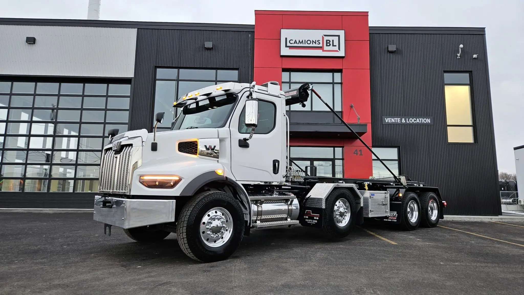 2026 Western Star 47X essieu reculé (set-back axle), moteur Detroit Diesel DD13 (525 hp, 1 850 LB/FT), transmission automatique Allison 4500RDS, batteries montées dans la cabine, freins à tambour, réservoir à carburant 100 gallons, différentiels full lock, 10 roues en aluminium avec pneus Michelin, siège chauffeur avec suspension à air, chauffant et climatisé. 2 unités en préparation, elles seront équipées d’essieux relevables (SM Suspension ou Tardif et fils) et de systèmes roll-off Chagnon (Durabac) de 24 pieds. N’hésitez pas à communiquer avec un de nos conseillers aux ventes pour plus d’informations. Prendre note que les 3 premières photos sont à titre indicatif.