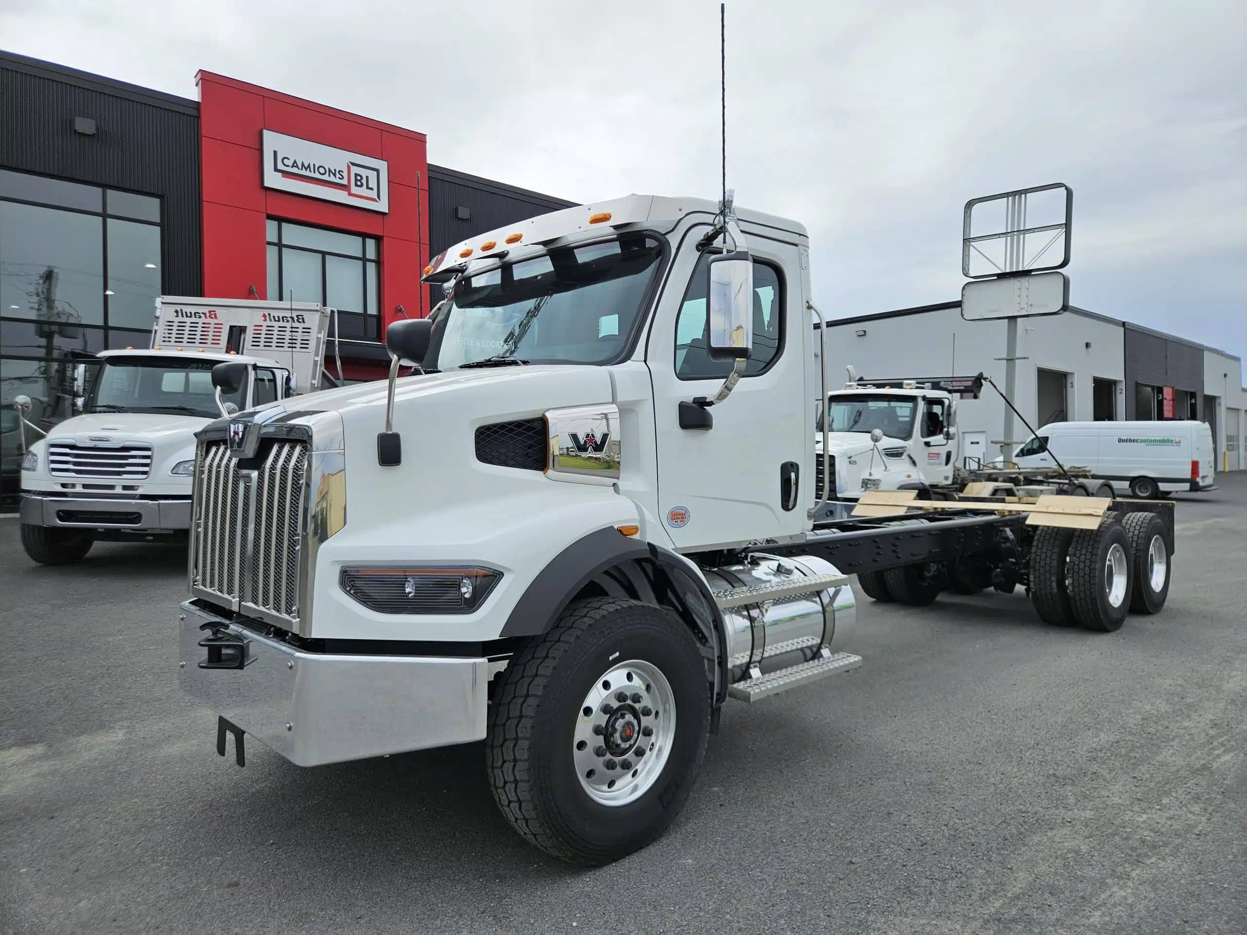 2026 Western Star 47X essieu reculé (set-back axle), moteur Detroit Diesel DD13 (525 hp, 1 850 LB/FT), transmission automatique Allison 4500RDS, prêt à recevoir un PTO, batteries montées dans la cabine, freins à tambour, réservoir à carburant 100 gallons, différentiels full lock, 10 roues en aluminium avec pneus Michelin, siège chauffeur avec suspension à air, chauffant et climatisé. N’hésitez pas à communiquer avec un de nos conseillers aux ventes pour plus d’informations.