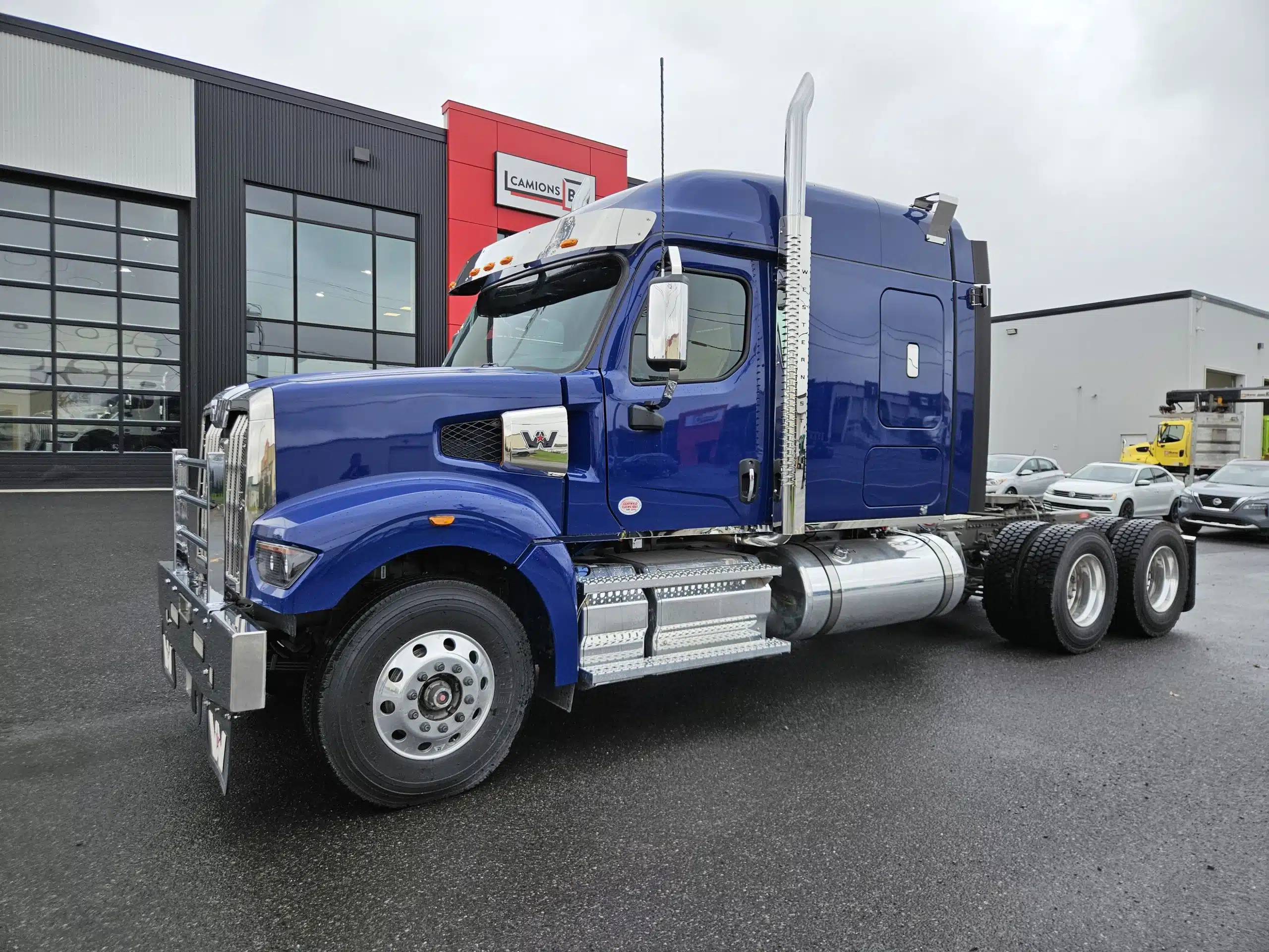 2026 Western Star 49X essieu avancé (set-front axle) avec le power hood, moteur Detroit Diesel DD16 (600 hp, 2 050 LB/FT), transmission manuelle 18 vitesses prête à recevoir un PTO, freins à tambours, différentiels full lock, sellette Holland FW70, 2 réservoirs à carburant (140 & 70 gallons) et réservoir hydraulique 100 gallons, 10 roues en aluminium chaussées de pneus Michelin, siège conducteur et passager en cuir avec suspension à air, chauffants et ventilés, chauffe-cabine Webasto, connectivité Apple Carplay et Android Auto. Prêt à être équipé selon vos besoins! N’hésitez pas à communiquer avec l’un de nos représentants aux ventes pour plus d’informations.