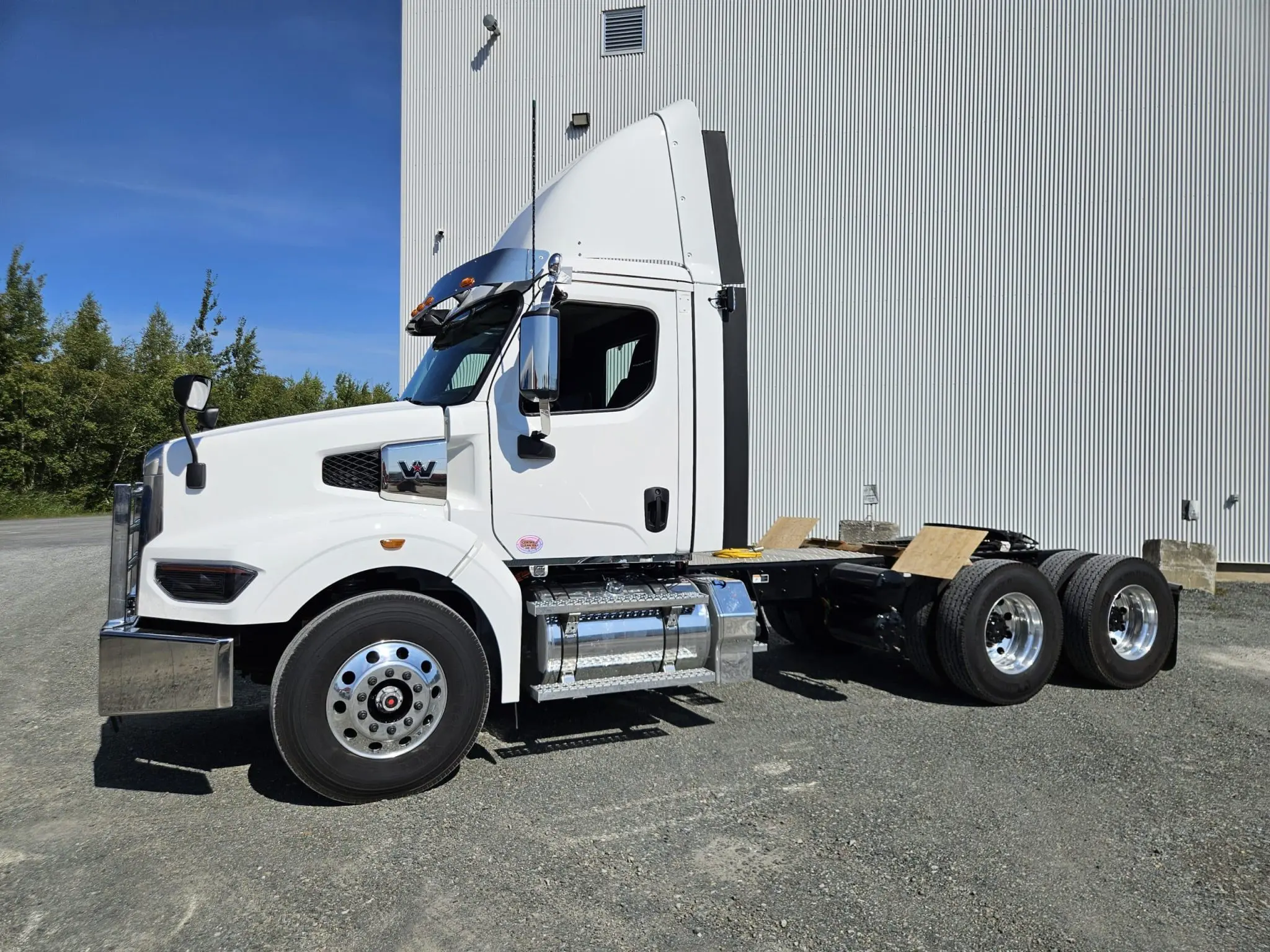 2026 Western Star 49X essieu reculé (set-back axle), moteur Detroit Diesel DD15 (505 hp, 1 750 LB/FT), transmission automatisée DT12 prête à recevoir un PTO, équipé du système de sécurité Detroit Assurance (assistance au freinage, avertissement de sortie de voie, régulateur de vitesse adaptatif, détecteurs d’angles morts), freins à disque, différentiels full lock, sellette Holland FW35, 2 réservoirs à carburant (100 & 90 gallons), 10 roues en aluminium chaussées de pneus Michelin, siège conducteur en cuir avec suspension à air, chauffant et ventilé, batteries dans la cabine, connectivité Apple Carplay et Android Auto. Prêt à travailler! N’hésitez pas à communiquer avec l’un de nos représentants aux ventes pour plus d’informations.