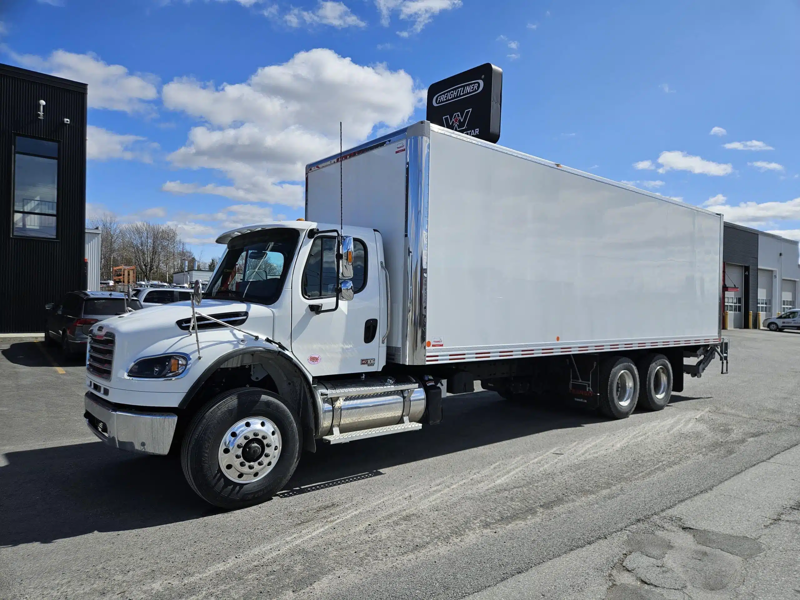 2026 Freightliner M2106 plus, moteur Detroit Diesel DD8 (350 hp, 1 050 LB/FT), chauffe-moteur Espar, transmission automatique Allison 3000RDS, camion configuré d’origine pour l’installation d’un PTO, différentiels full lock, freins à tambour, 10 roues en aluminium avec pneus Michelin, 2 réservoirs à carburant (100 & 50 gallons). Ces camions sont équipés de boites Fourgons Transit Classik 28 pieds et de monte-charge Maxon GPTB-4 (capacité 4000 lbs). N’hésitez pas à communiquer avec un de nos représentants aux ventes pour plus d’informations