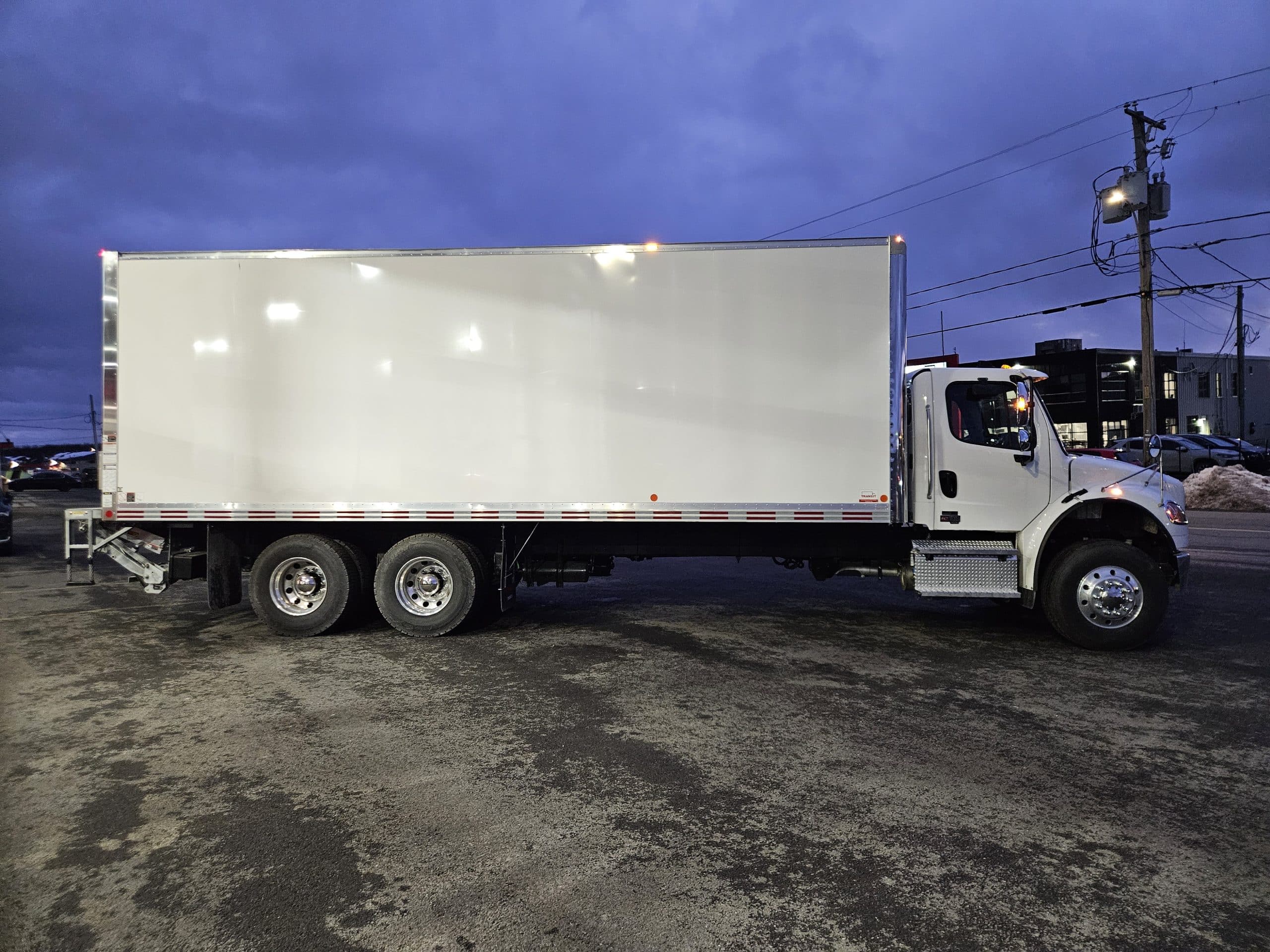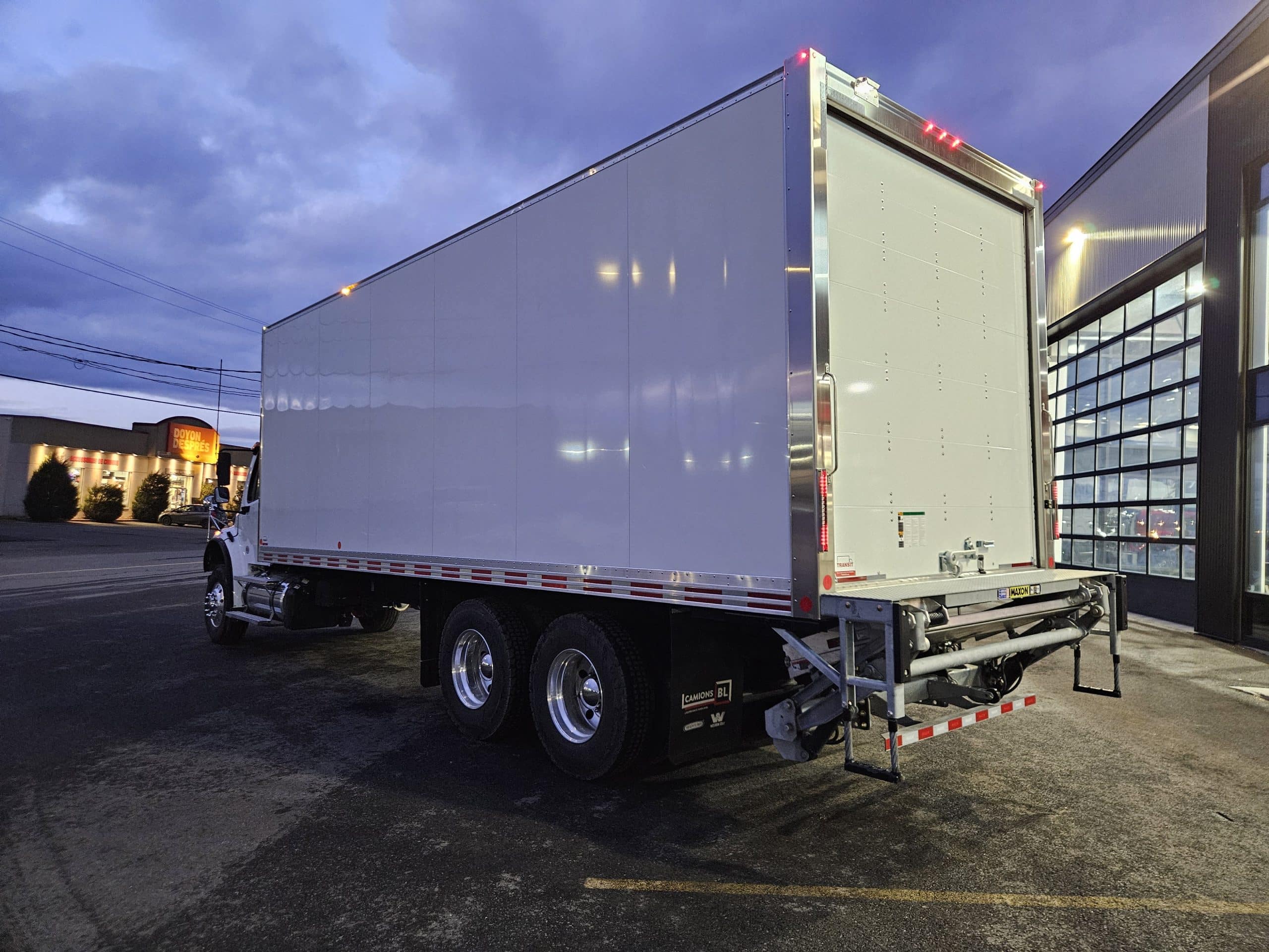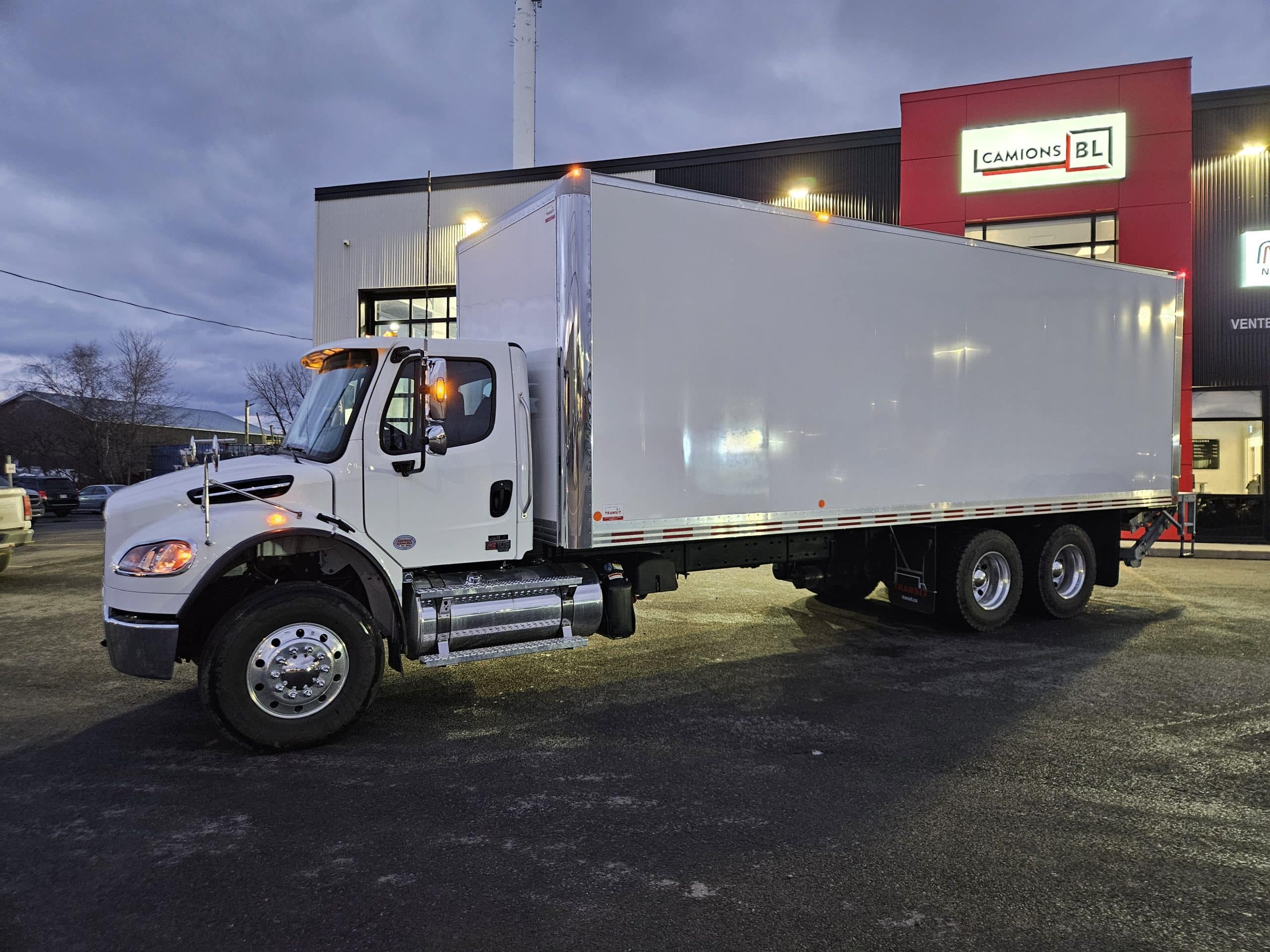 2026 Freightliner M2106 Plus, moteur Detroit Diesel DD8 (350 hp, 1 050 LB/FT), transmission automatique Allison 3000RDS, équipé pour installation d’un PTO, freins à tambour, différentiels full lock, réservoir à carburant 100 gallons, 10 roues en aluminium avec pneus Michelin. Ce camion est équipé d’une boite Fourgons Transit Classik 26 pieds et d’un monte-charge Maxon GPTB-3 (capacité de 3 000 lbs). N’hésitez pas à communiquer avec un de nos conseillers aux ventes pour plus d’informations.