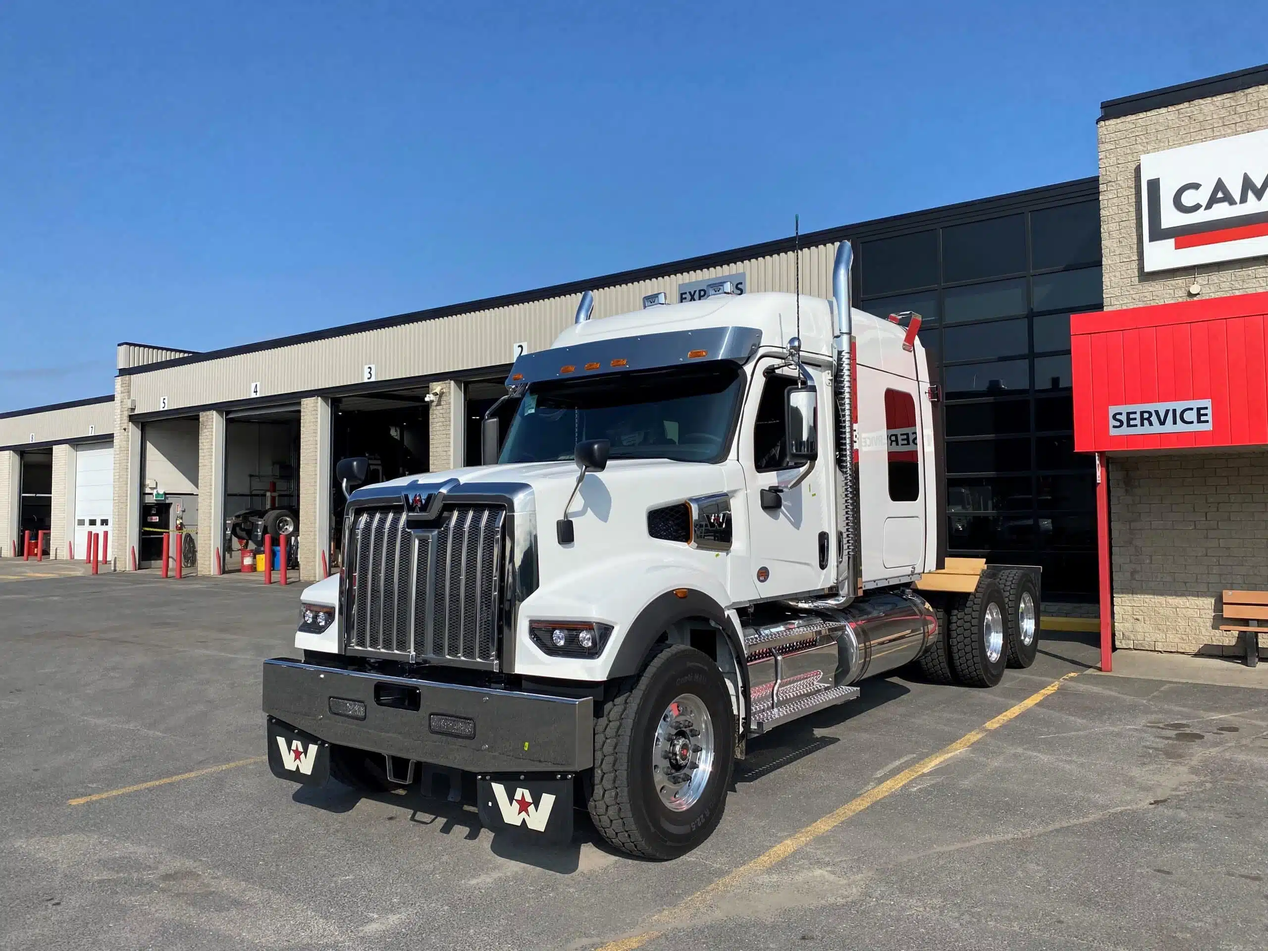 2026 Western Star 49X essieu avancé (set-front axle) équipé du power hood (capot surélevé pour un plus grand radiateur, afin d’assurer une meilleure capacité de refroidissement), moteur Cummins X15 (565 hp, 1 850 LB/FT), transmission manuelle 18 vitesses, prêt pour l’installation de deux PTO, freins à tambour, différentiels full lock, sellette Holland FW35 no-tilt, deux réservoirs à carburant 150 gallons, 10 roues en aluminium avec pneus Continental, couchette 72 pouces, système de climatisation et chauffage de couchette HVAC à batteries, sièges en cuir chauffants et ventilés avec suspension à air. Camion prêt à être équipé selon vos besoins! N’hésitez pas à communiquer avec un de nos conseillers aux ventes pour plus d’informations.