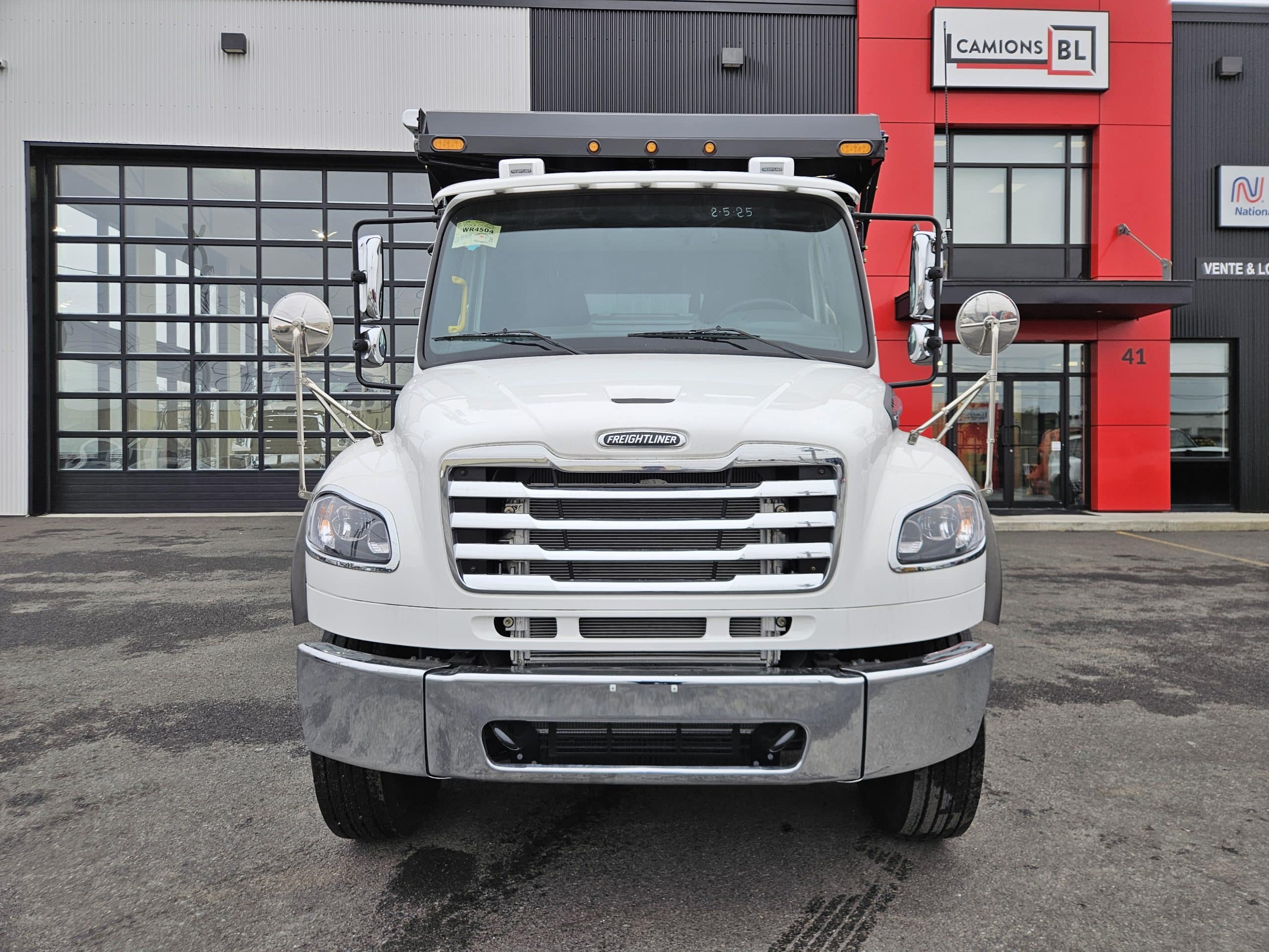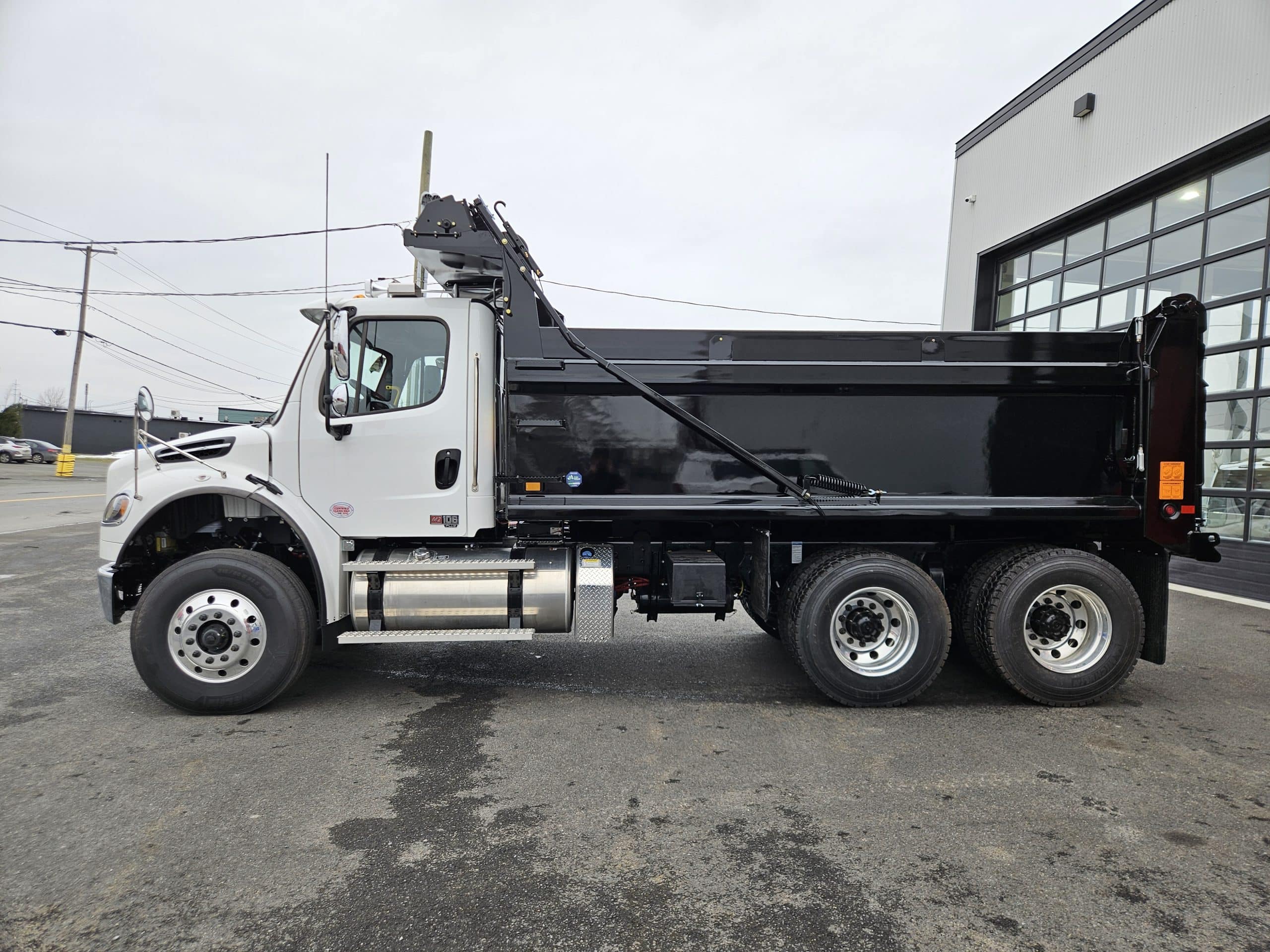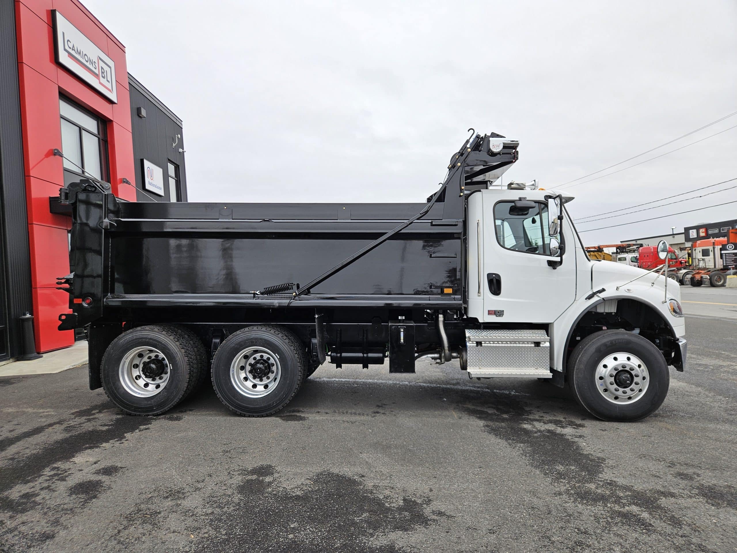 2026 Freightliner M2106 Plus, moteur Detroit Diesel DD8 (350 hp, 1 050 LB/FT), transmission automatique Allison 3000RDS, freins à tambour, réservoir à carburant 100 gallons, 10 roues en aluminium avec pneus Michelin, siège conducteur avec suspension à air, siège passager fixe. Ce camion est équipé d’une benne basculante Lagacé et frère LF400 15,5 pieds. N’hésitez pas à communiquer avec un de nos conseillers aux ventes pour plus d’informations.