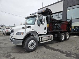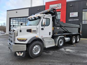 2026 Western Star 49x essieu reculé (set-back axle), moteur Detroit Diesel DD13 (525 hp, 1 850 LB/FT), transmission automatique Allison, freins à tambour, différentiels full lock, réservoir à carburant 100 gallons, roues en aluminium chaussées de pneus Michelin, batteries montées dans la cabine, siège conducteur avec suspension à air, chauffant et ventilé. Ce camion sera équipé d’un essieu relevable Tardif et fils, d’un coffre marchepied sous la cabine et d’une benne basculante Lagacé et frère. N’hésitez pas à communiquer avec l’un de nos représentants aux ventes pour plus d’informations.