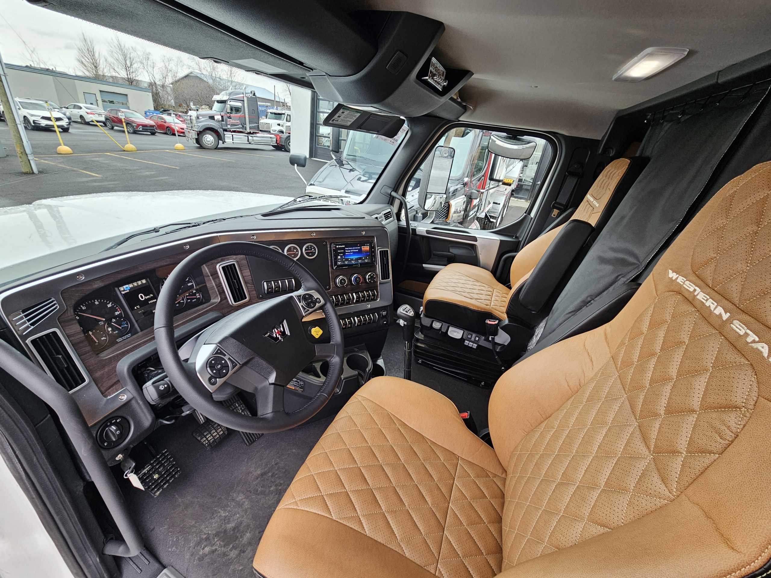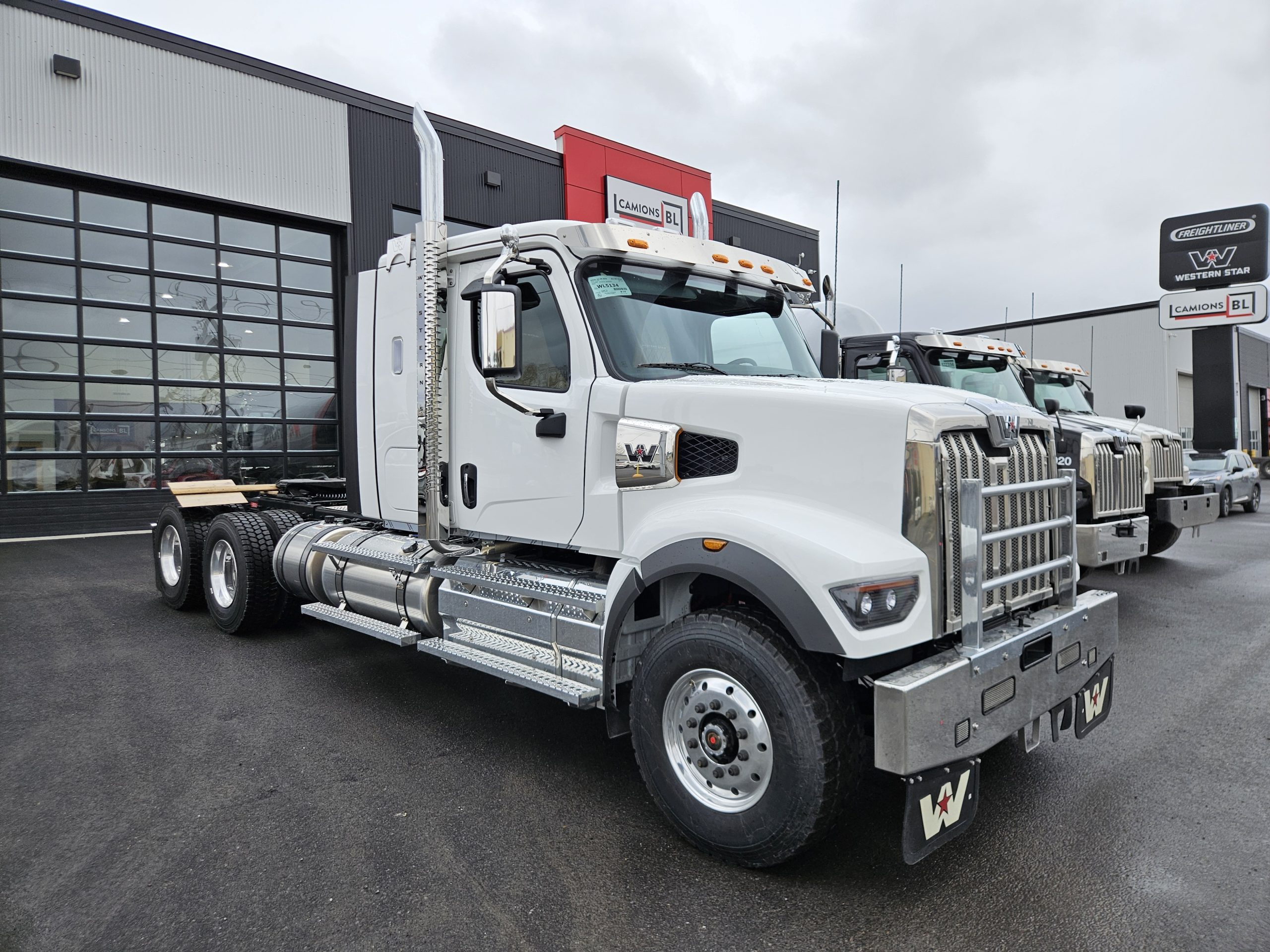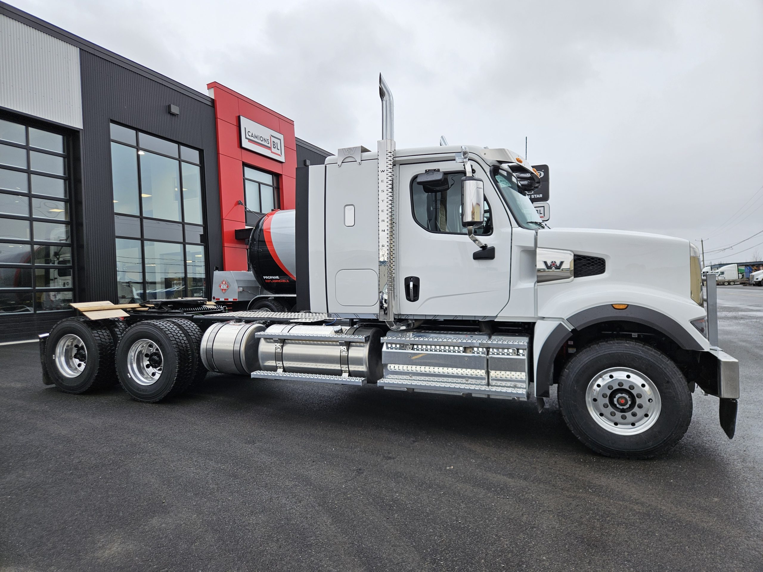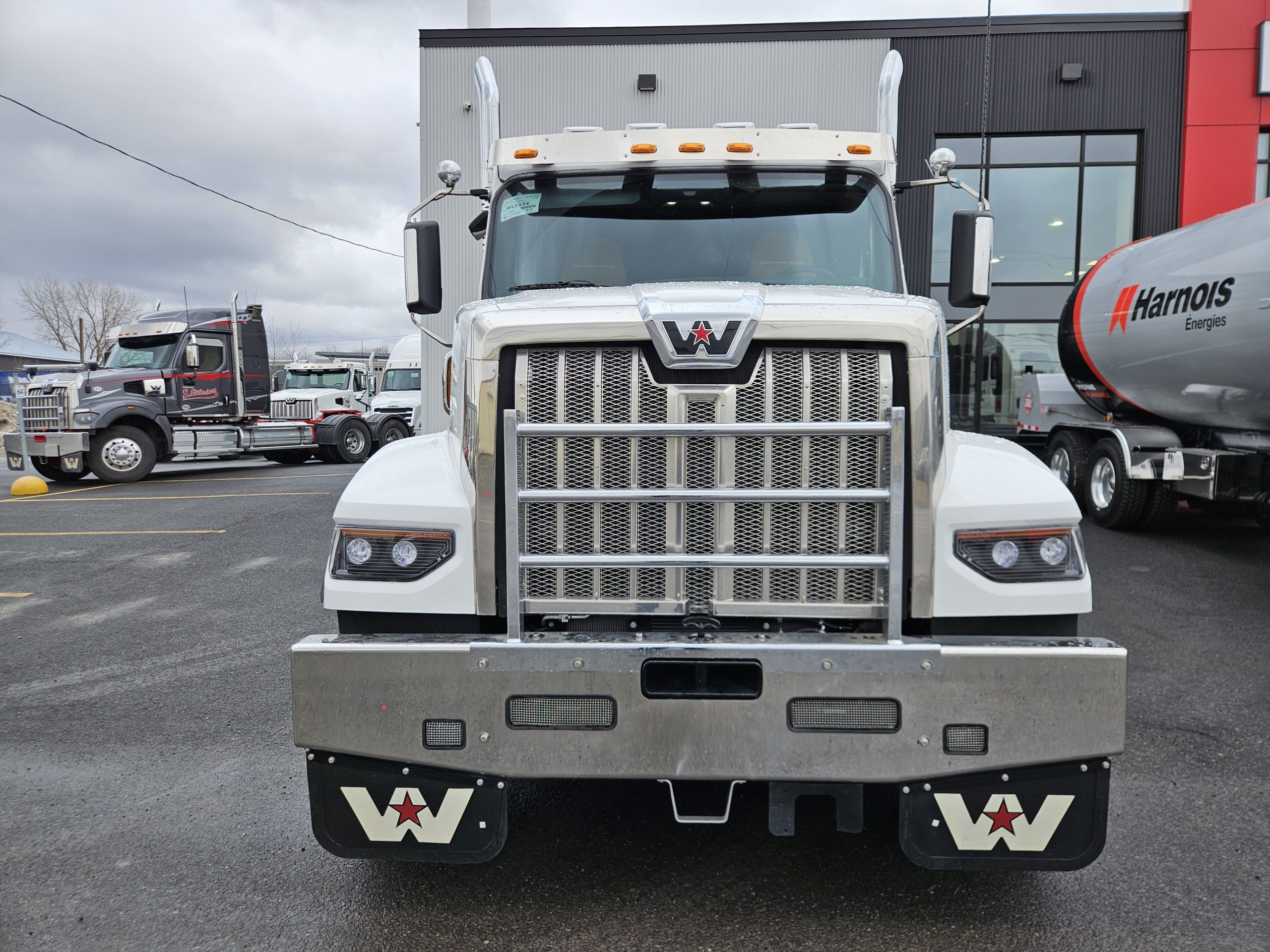 2026 Western Star 49X set-front axle equipped with the power hood, Detroit Diesel DD16 engine (560 hp, 2 050 LB/FT), 18 speed manual transmission, ready for the installation of two PTO, drum brakes, full lock differentials, Holland FW35 fifth wheel, two 120 gallons fuel tanks and 50 gallons hydraulic tank, 10 aluminium wheels with Michelin tires, 36 inches flat top sleeper, driver and passenger seat with air suspension, leather covers, heated and ventilated. This unit is ready to be equipped for your needs! Please contact one of our sales representative for more informations.
