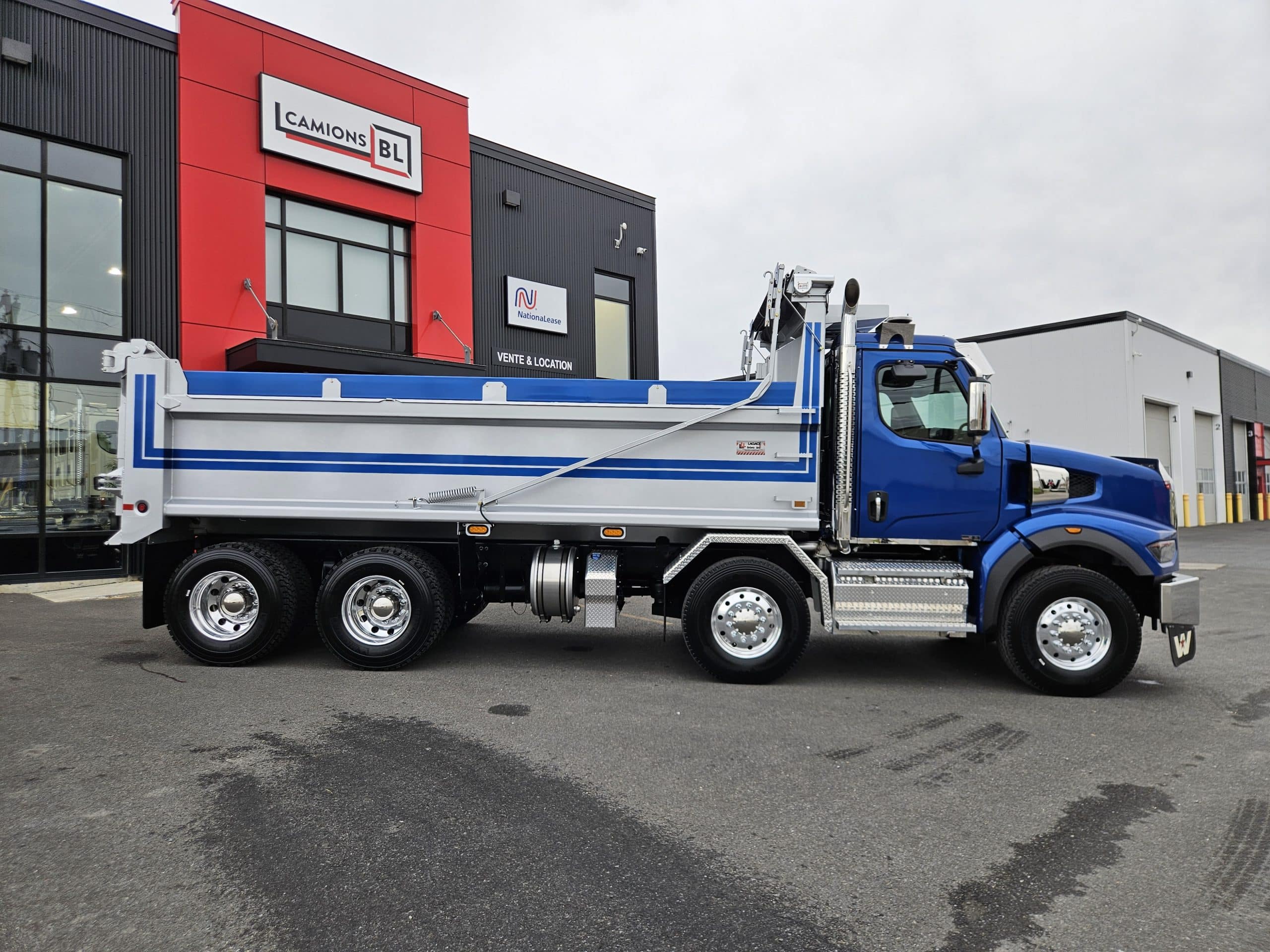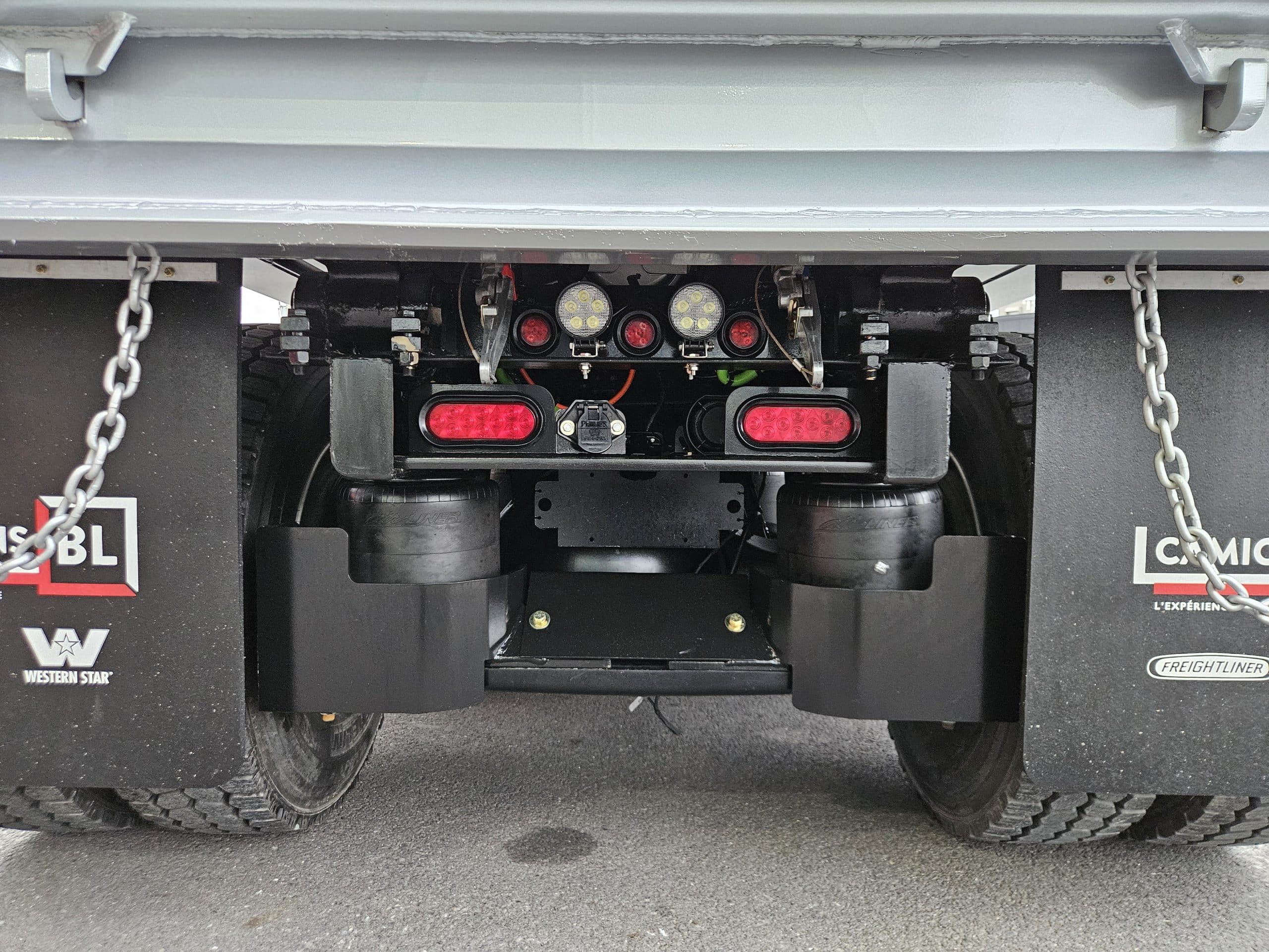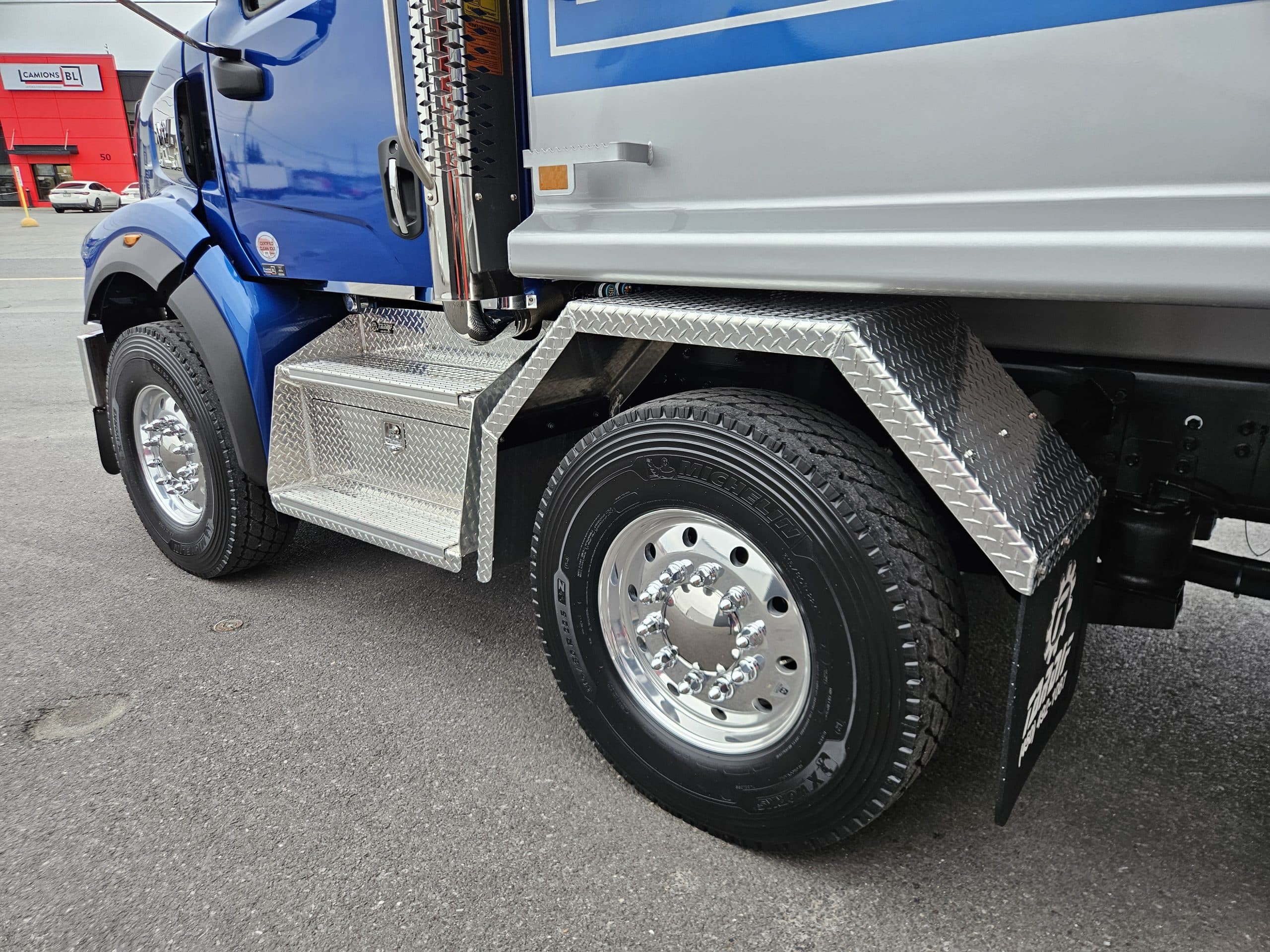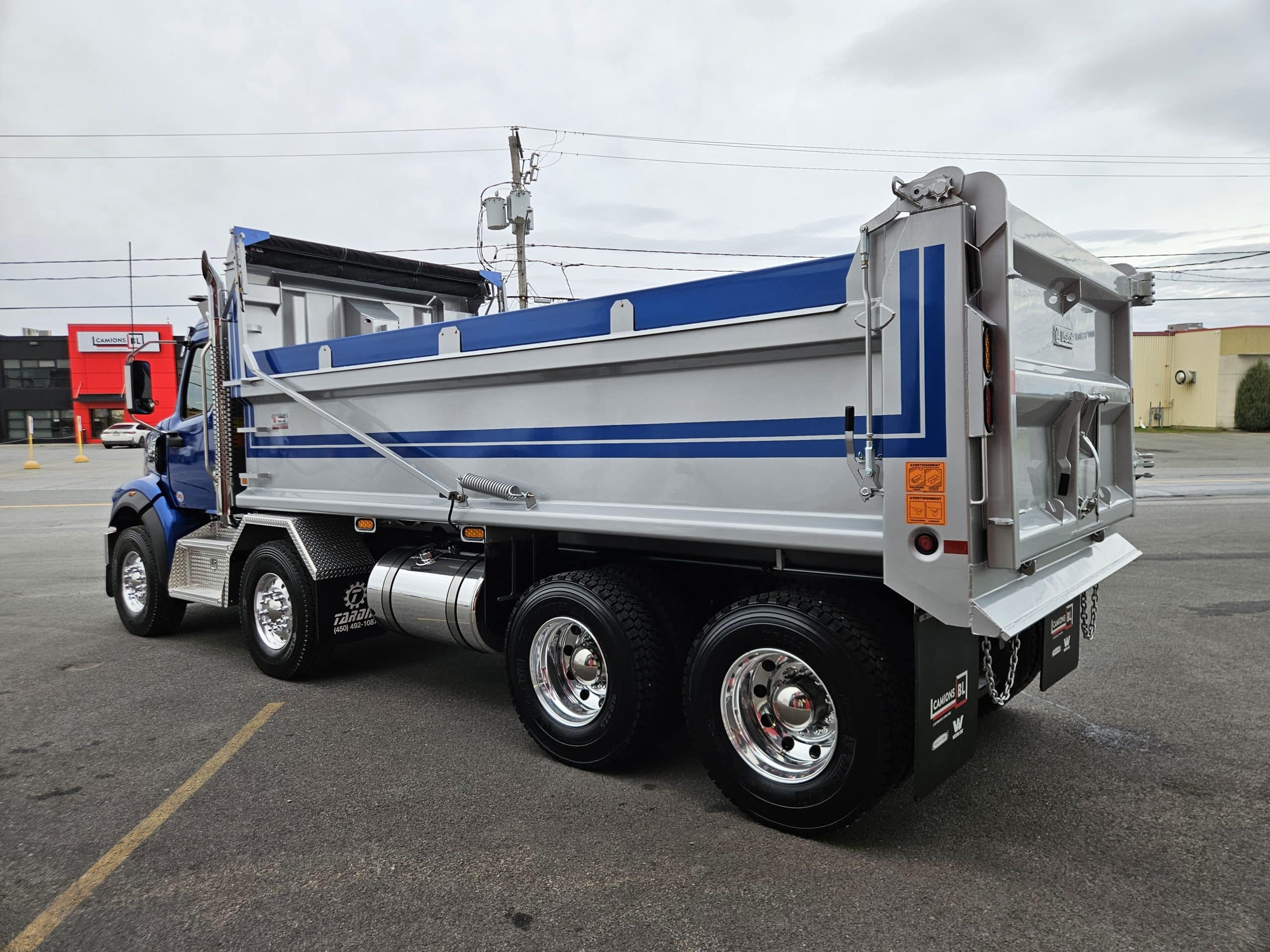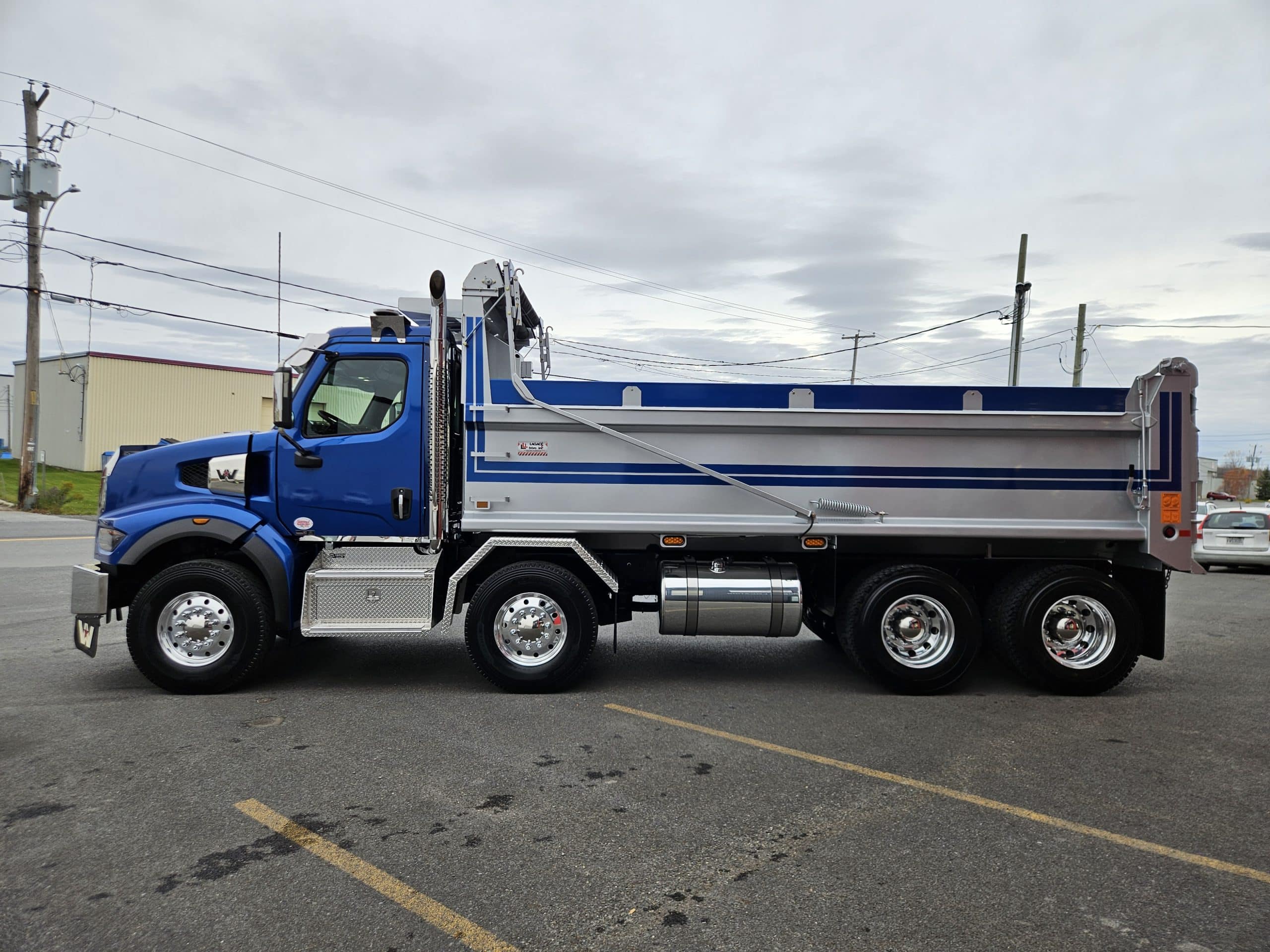 2026 Western Star 49X set-back axle, Detroit Diesel DD13 engine (525 hp, 1 850 LB/FT), Allison 4500RDS automatic transmission, drum brakes, full lock differentials, 100 gallons fuel tank, aluminium wheels with Michelin tires, batteries mounted inside of cab, driver seat with air suspension, heated and ventilated. This truck is already equipped with a Tardif et fils hybrid fix axle, a step tool box under the cab and a Lagacé et frère dump box. Please contact one of our sales representative for more informations.