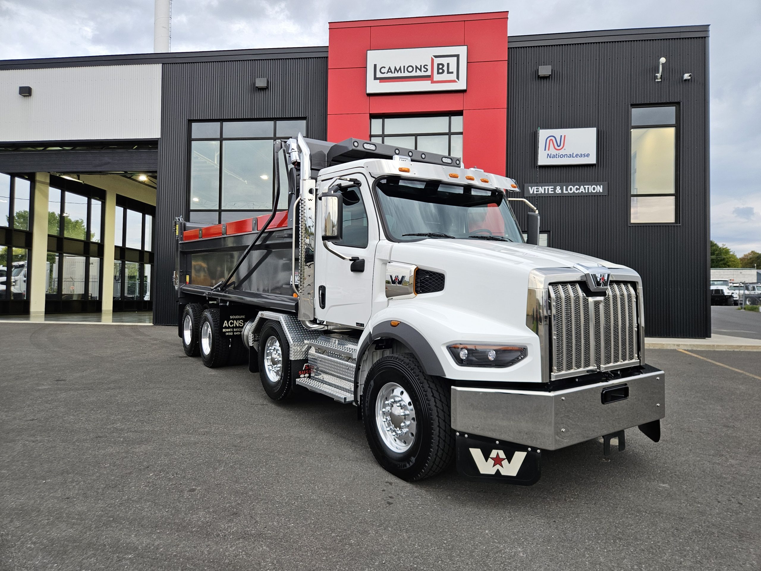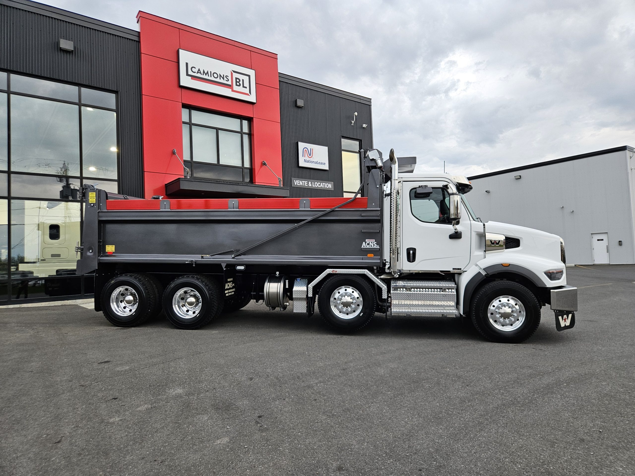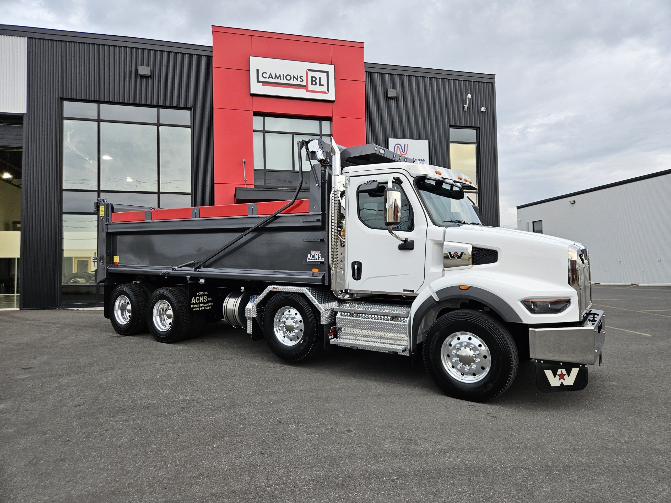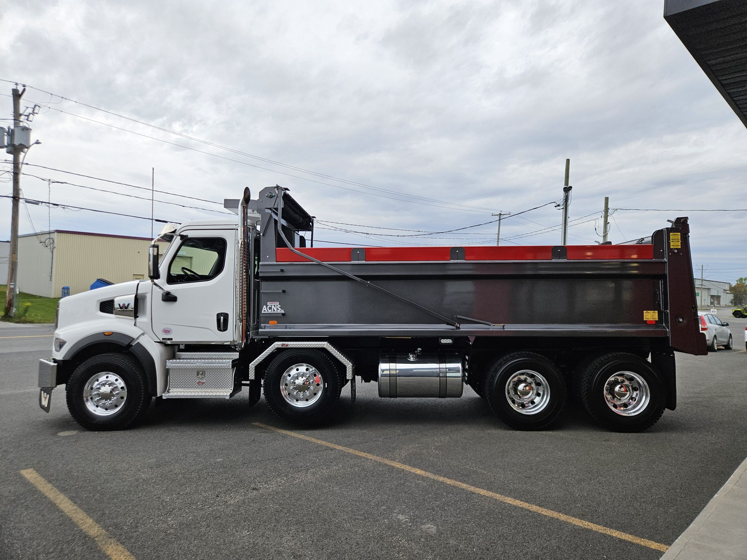 2026 Western Star 49X set-back axle, Detroit Diesel DD13 engine (525 hp, 1 850 LB/FT), Allison 4500RDS automatic transmission, drum brakes, full lock differentials, 100 gallons fuel tank, aluminium wheels with Michelin tires, batteries mounted inside of cab, driver seat with air suspension, heated and ventilated. This truck is equipped with a SM Suspension lift axle, a step tool box under the cab and a ACNS dump box mounted. Please contact one of our sales representative for more informations.