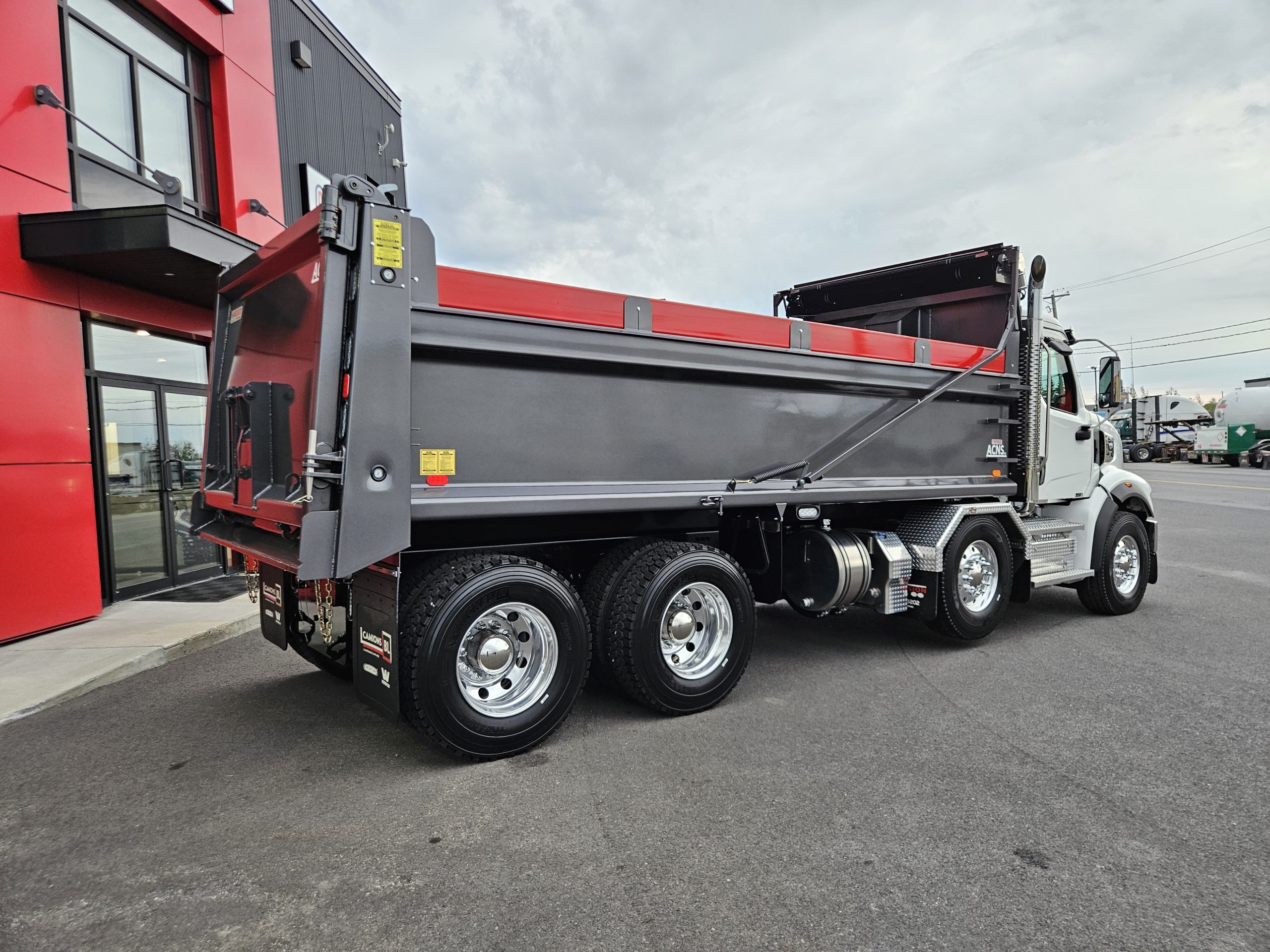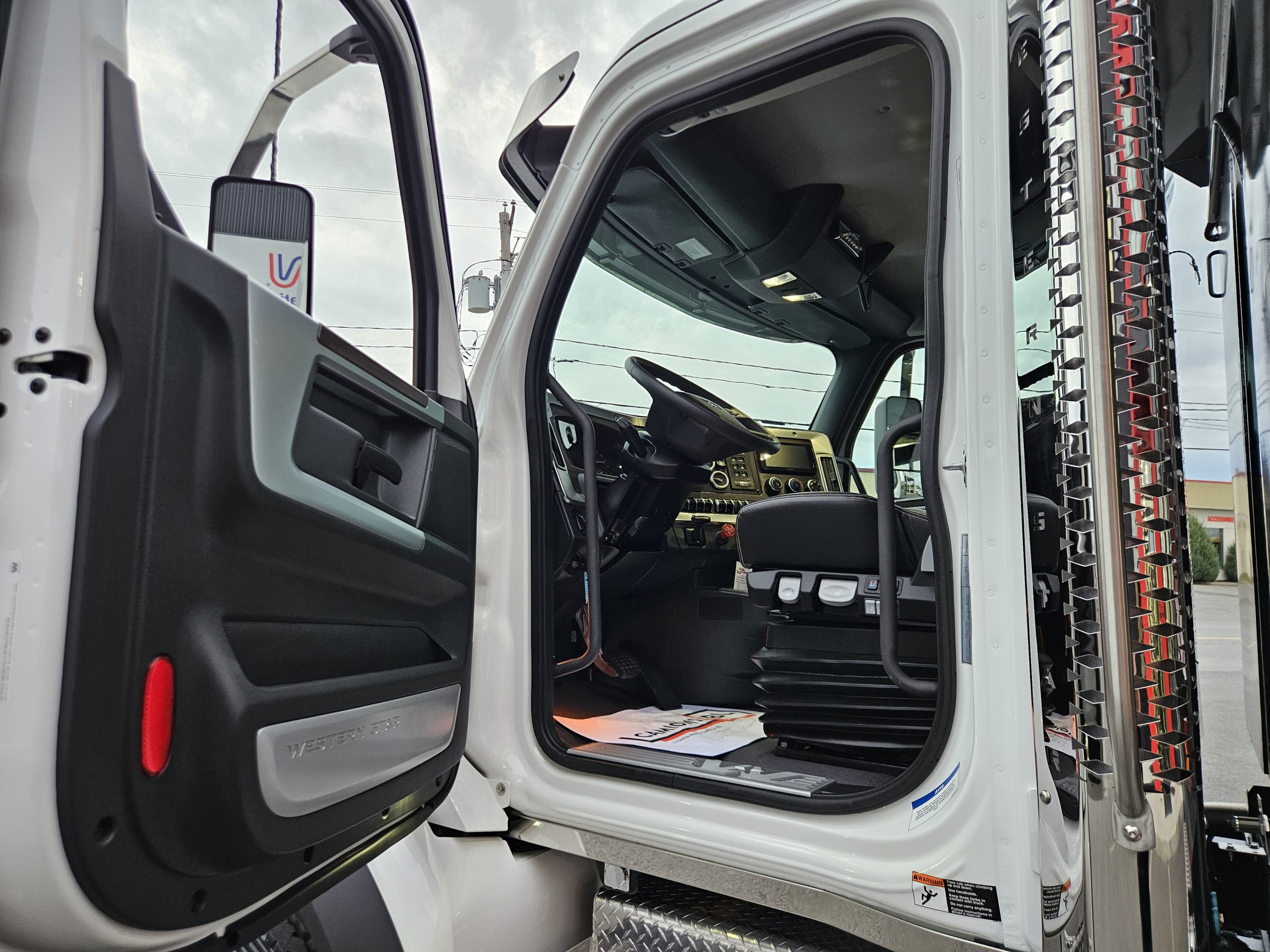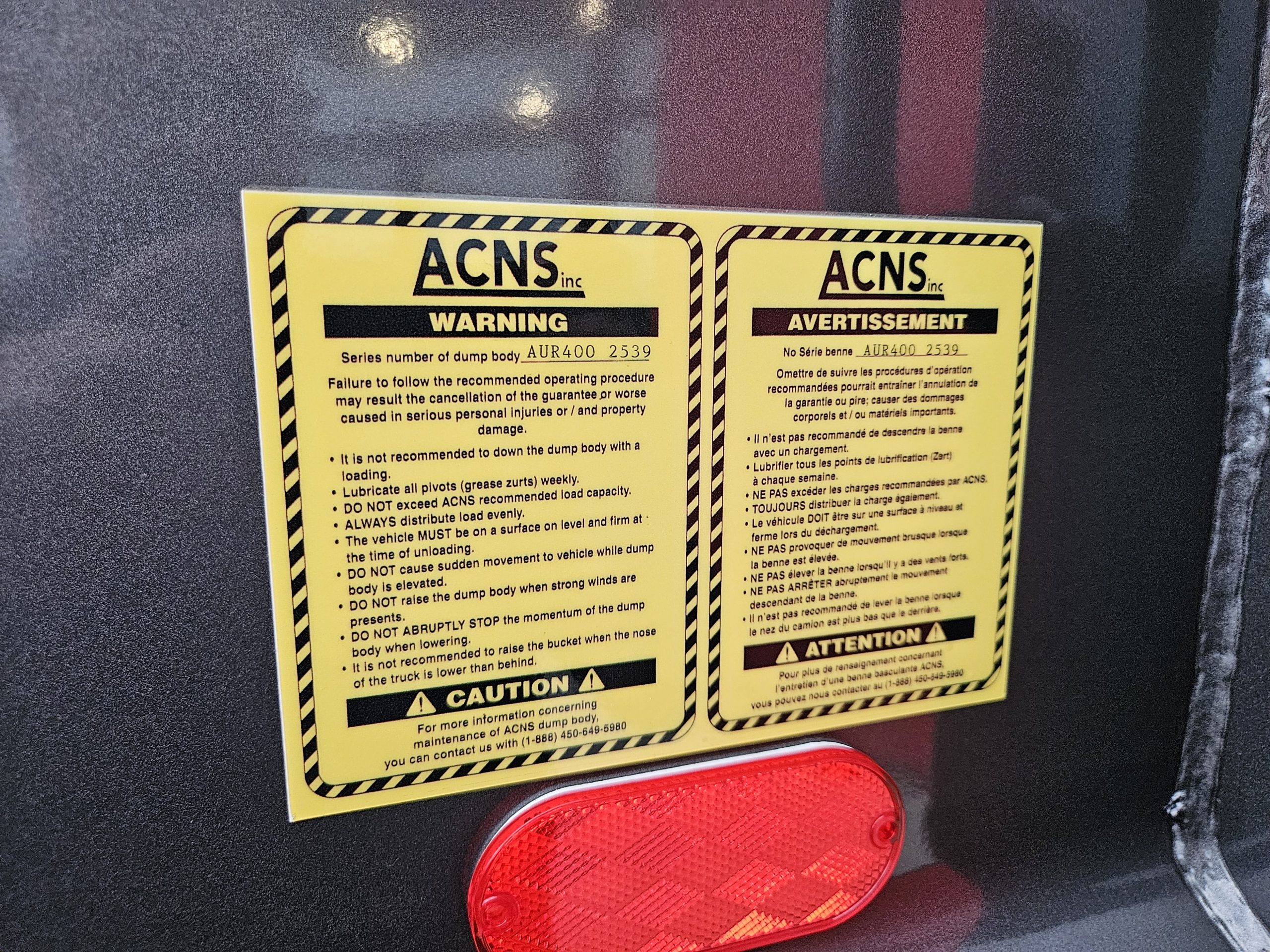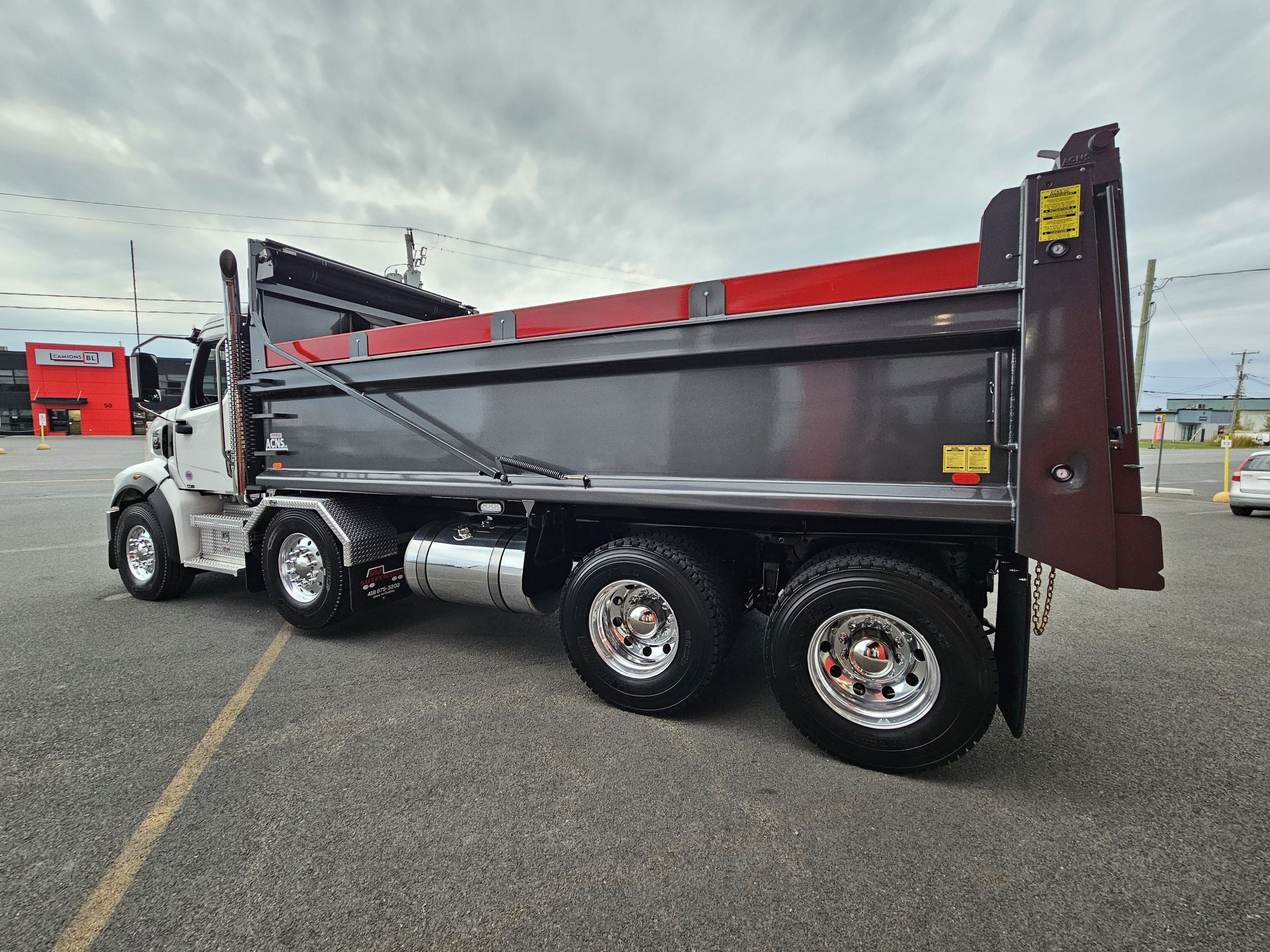 2026 Western Star 49X set-back axle, Detroit Diesel DD13 engine (525 hp, 1 850 LB/FT), Allison 4500RDS automatic transmission, drum brakes, full lock differentials, 100 gallons fuel tank, aluminium wheels with Michelin tires, batteries mounted inside of cab, driver seat with air suspension, heated and ventilated. This truck is equipped with a SM Suspension lift axle, a step tool box under the cab and a ACNS dump box mounted. Please contact one of our sales representative for more informations.