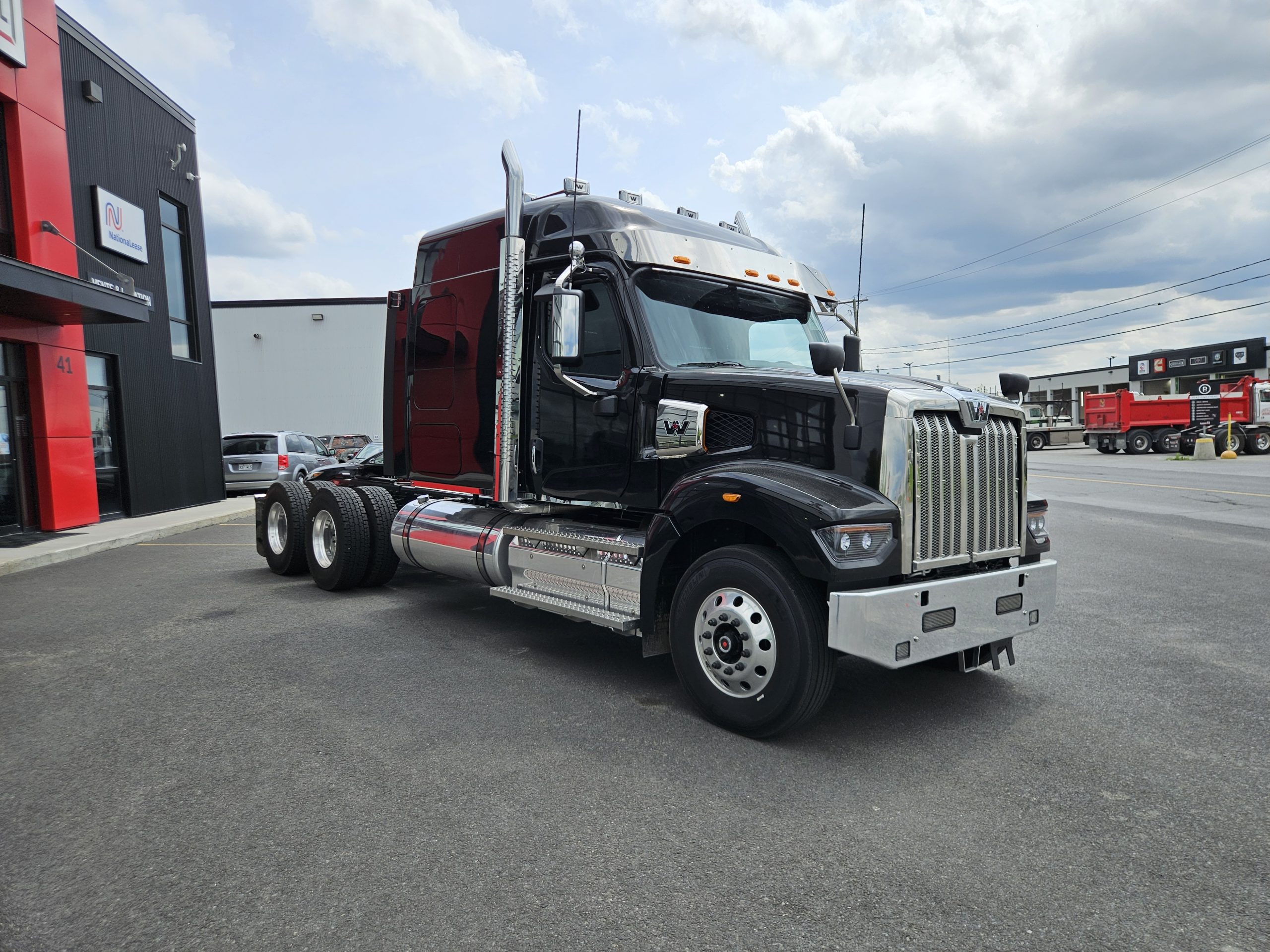 2026 Western Star 49X set-front axle with the power hood, Detroit Diesel DD16 engine (560 hp, 1 850 LB/FT), 18-speed manual transmission, ready for the installation of a PTO, drum brakes, full lock differentials, Holland FW35 fifth wheel, two 150 gallons fuel tanks, 10 aluminium wheels with Michelin tires, 72 inches midroof sleeper, HVAC bunk heating and air conditionner, leather seats with air suspension, heated and ventilated. This unit is ready to be equipped for your needs! Please contact one of our sales representative for more informations.