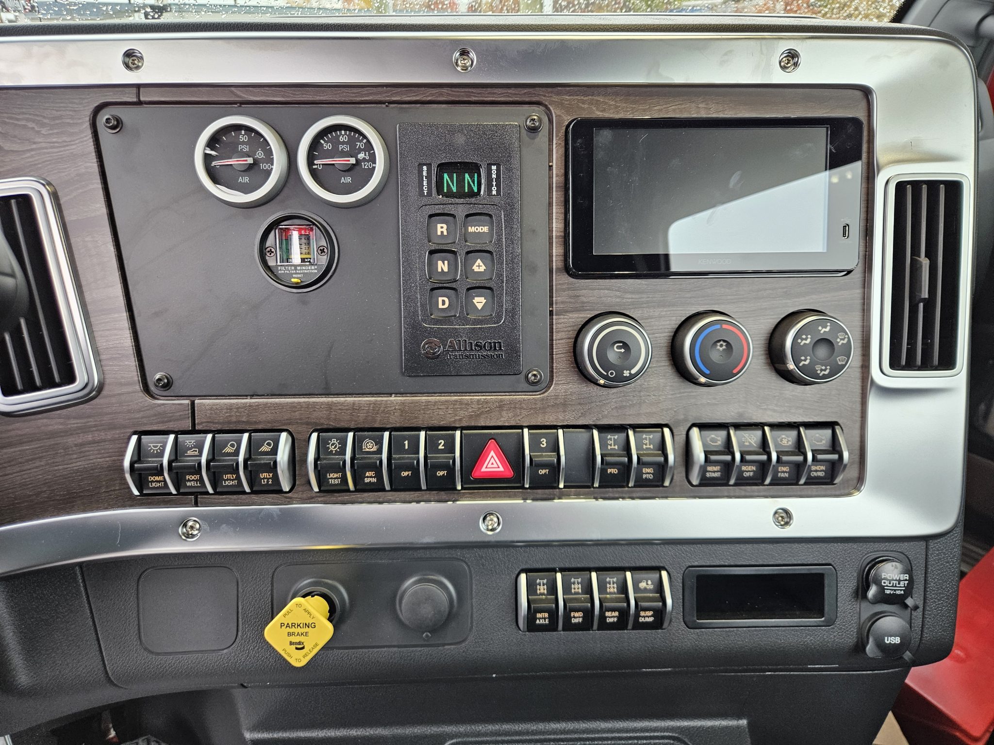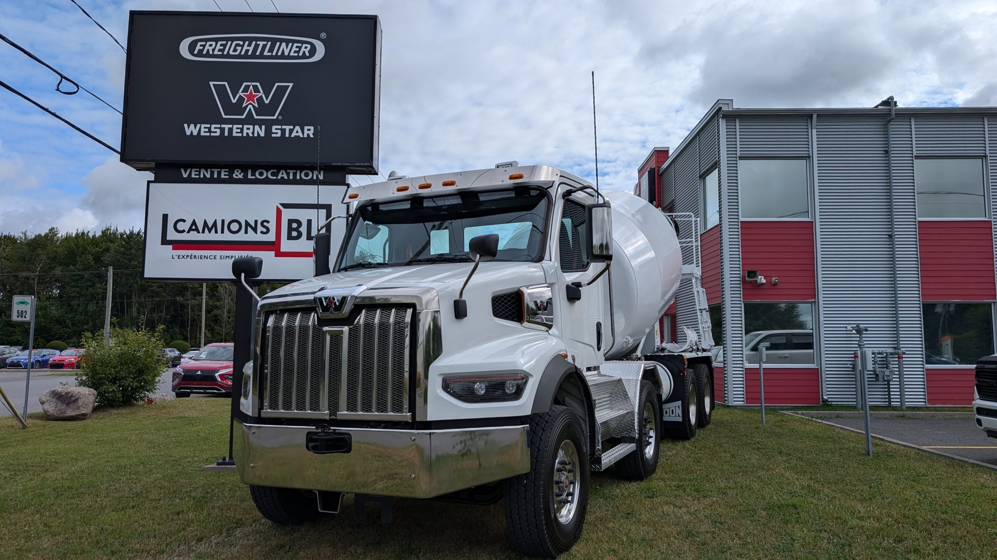 2026 Western Star 47X set-back axle, Cummins X12 engine (455 hp, 1 650 LB/FT), Allison 4500RDS automatic transmission, drum brakes, full lock differentials, 80 gallons fuel tank, aluminium wheels with Michelin tires, batteries mounted inside of cab. This unit is currently in preparation, it will be soon equipped with a London Machinery 10.5 yards mixer and a Tardif et fils hybrid directionnal axle. Please contact one of our sales representative for more informations.
