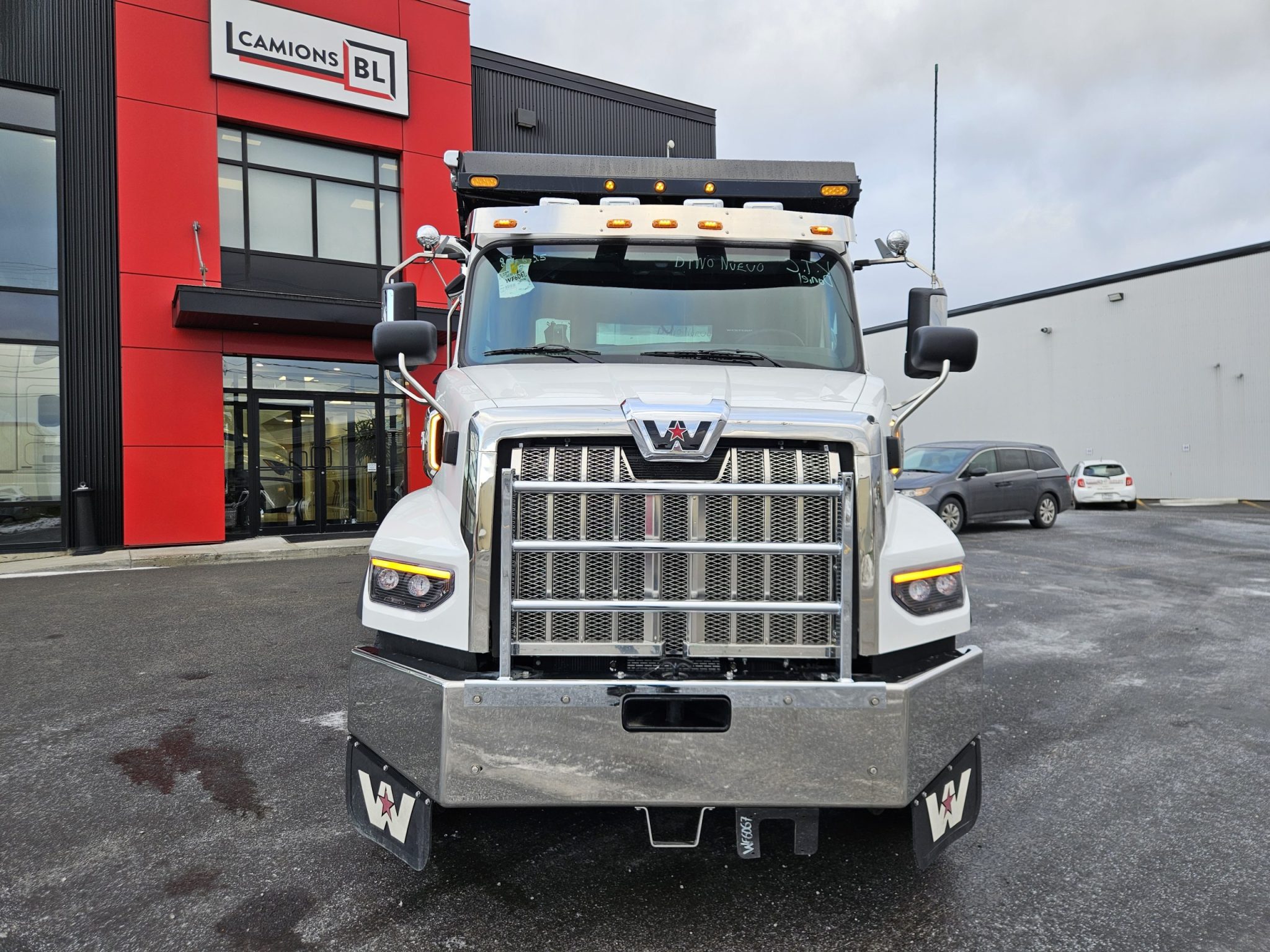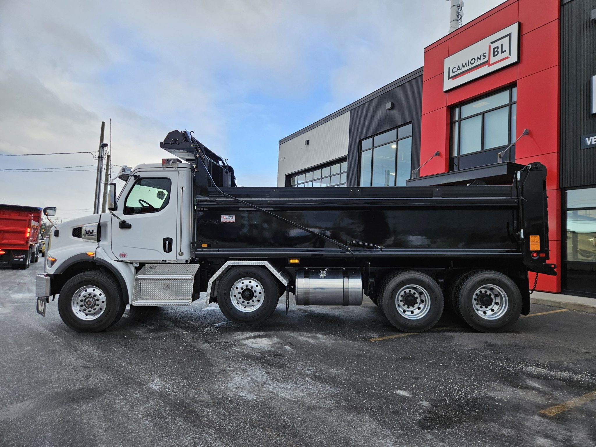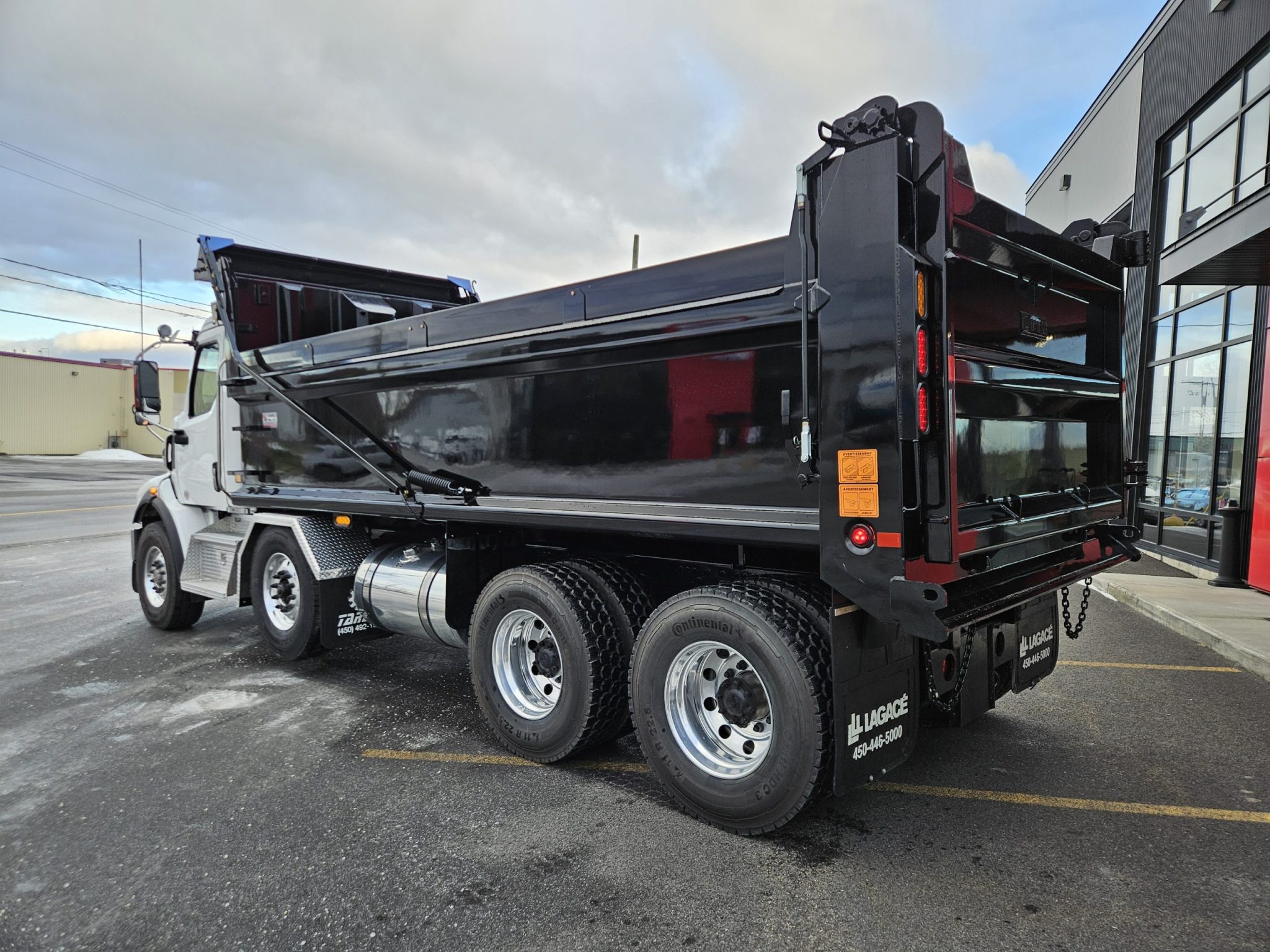 2026 Western Star 47X set-back axle, Cummins X12 engine (500 hp, 1 700 LB/FT), Allison 4500RDS automatic transmission, drum brakes, full lock differentials, 100 gallons fuel tank, aluminium wheels with Continental tires, batteries mounted inside of cab, driver seat with air suspension, heated and ventilated. This truck is equipped with a Tardif et fils lift axle, a step tool box under the cab and a Lagacé et frère dump box. Please contact one of our sales representative for more informations.