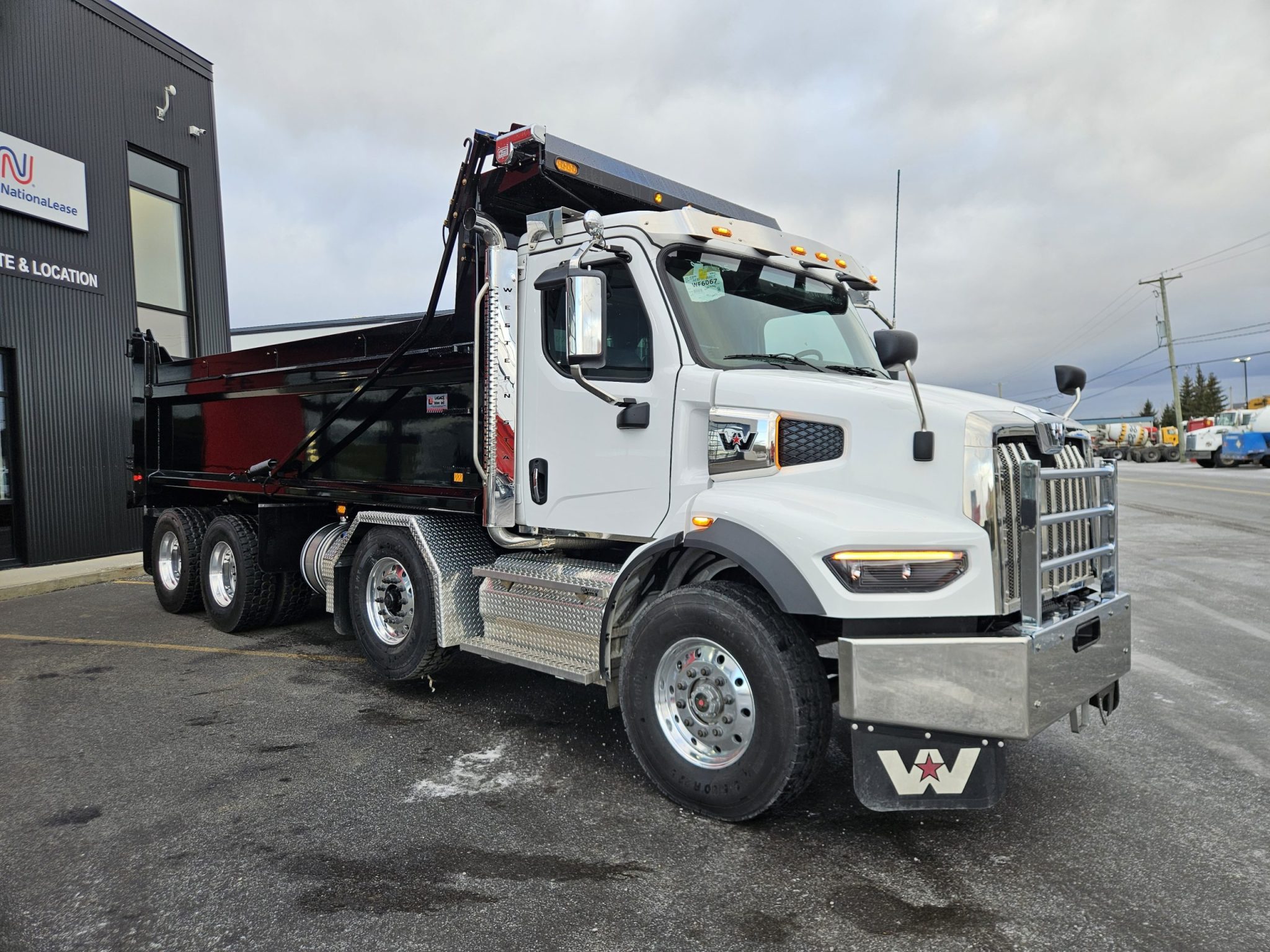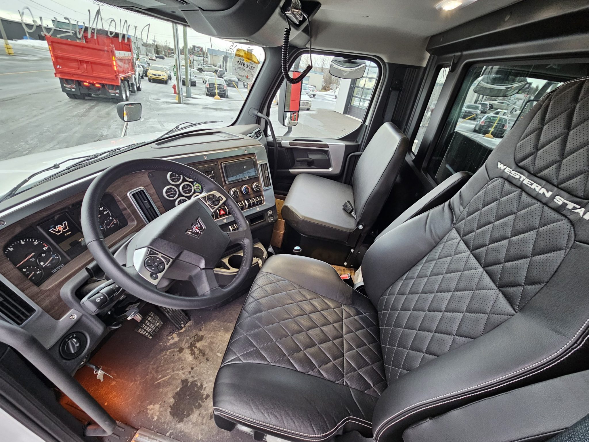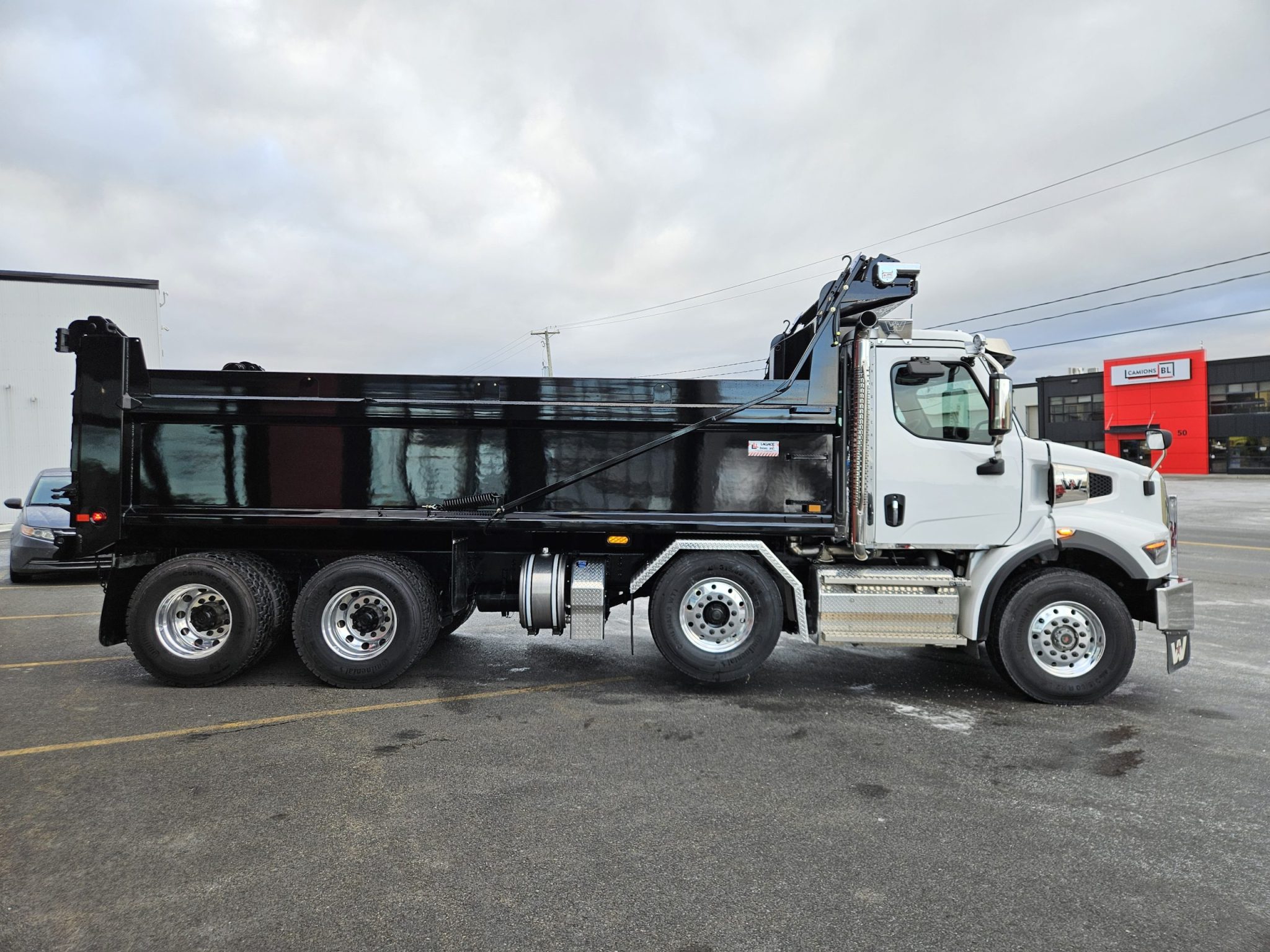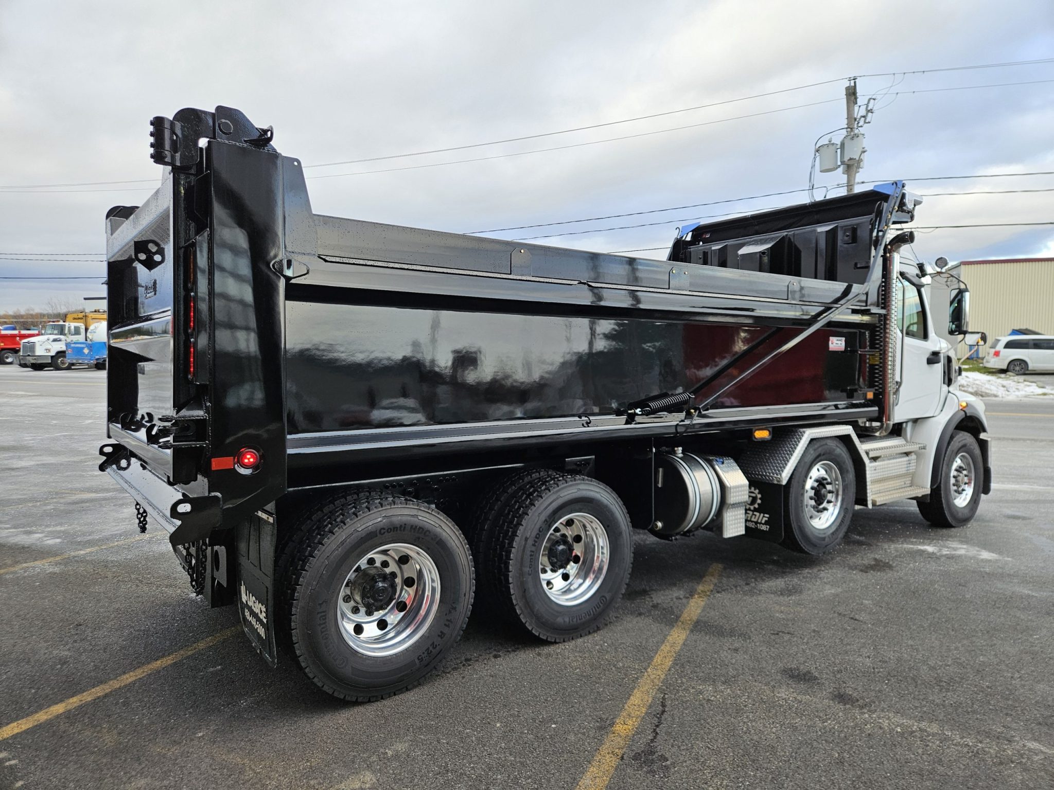 2026 Western Star 47X set-back axle, Cummins X12 engine (500 hp, 1 700 LB/FT), Allison 4500RDS automatic transmission, drum brakes, full lock differentials, 100 gallons fuel tank, aluminium wheels with Continental tires, batteries mounted inside of cab, driver seat with air suspension, heated and ventilated. This truck is equipped with a Tardif et fils lift axle, a step tool box under the cab and a Lagacé et frère dump box. Please contact one of our sales representative for more informations.