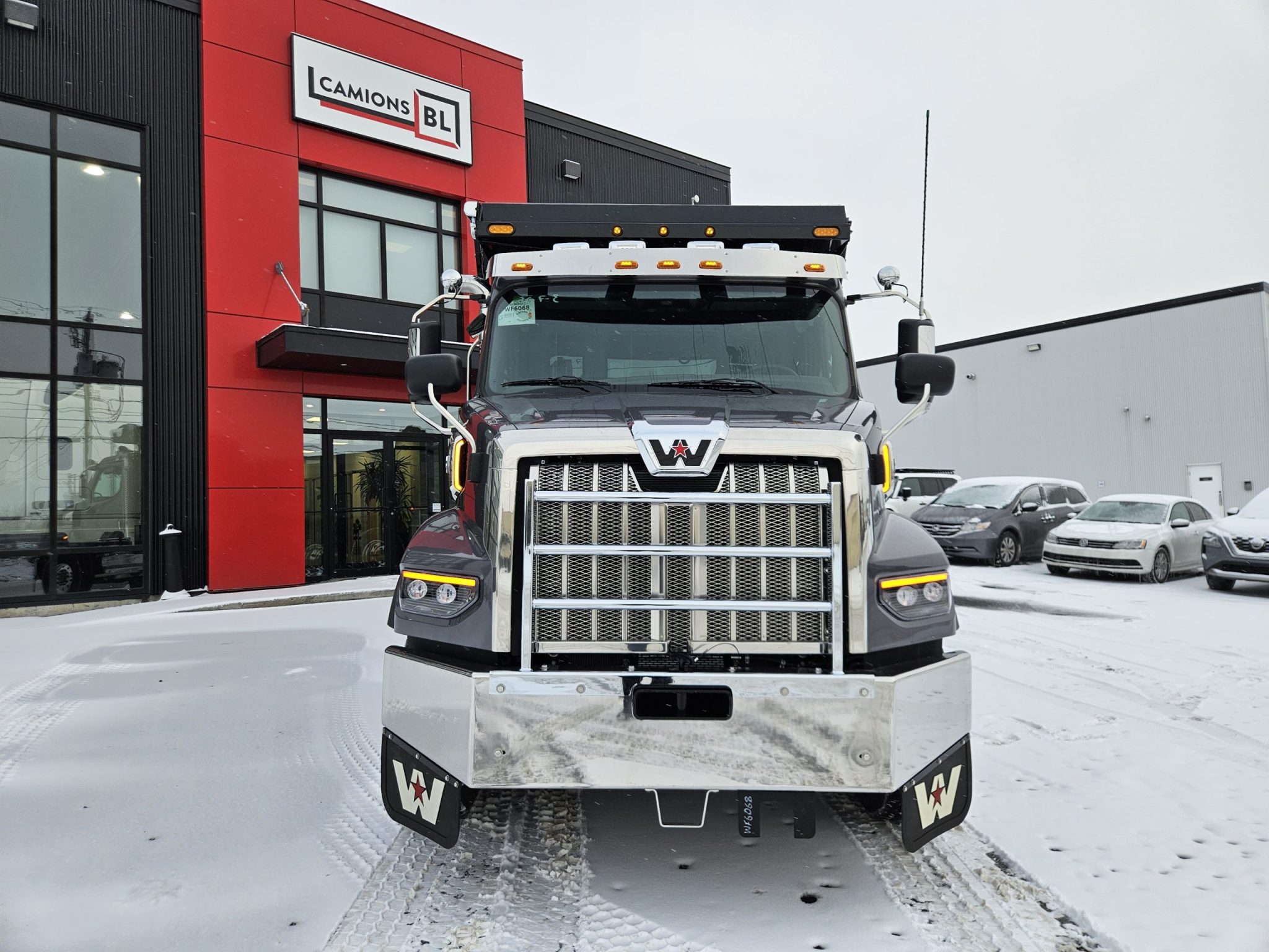 2026 Western Star 47X set-back axle, Cummins X12 engine (500 hp, 1 700 LB/FT), Allison 4500RDS automatic transmission, drum brakes, full lock differentials, 100 gallons fuel tank, aluminium wheels with Continental tires, batteries mounted inside of cab, driver seat with air suspension, heated and ventilated. This truck is equipped with a Tardif et fils lift axle, a step tool box under the cab and a Lagacé et frère dump box. Please contact one of our sales representative for more informations.