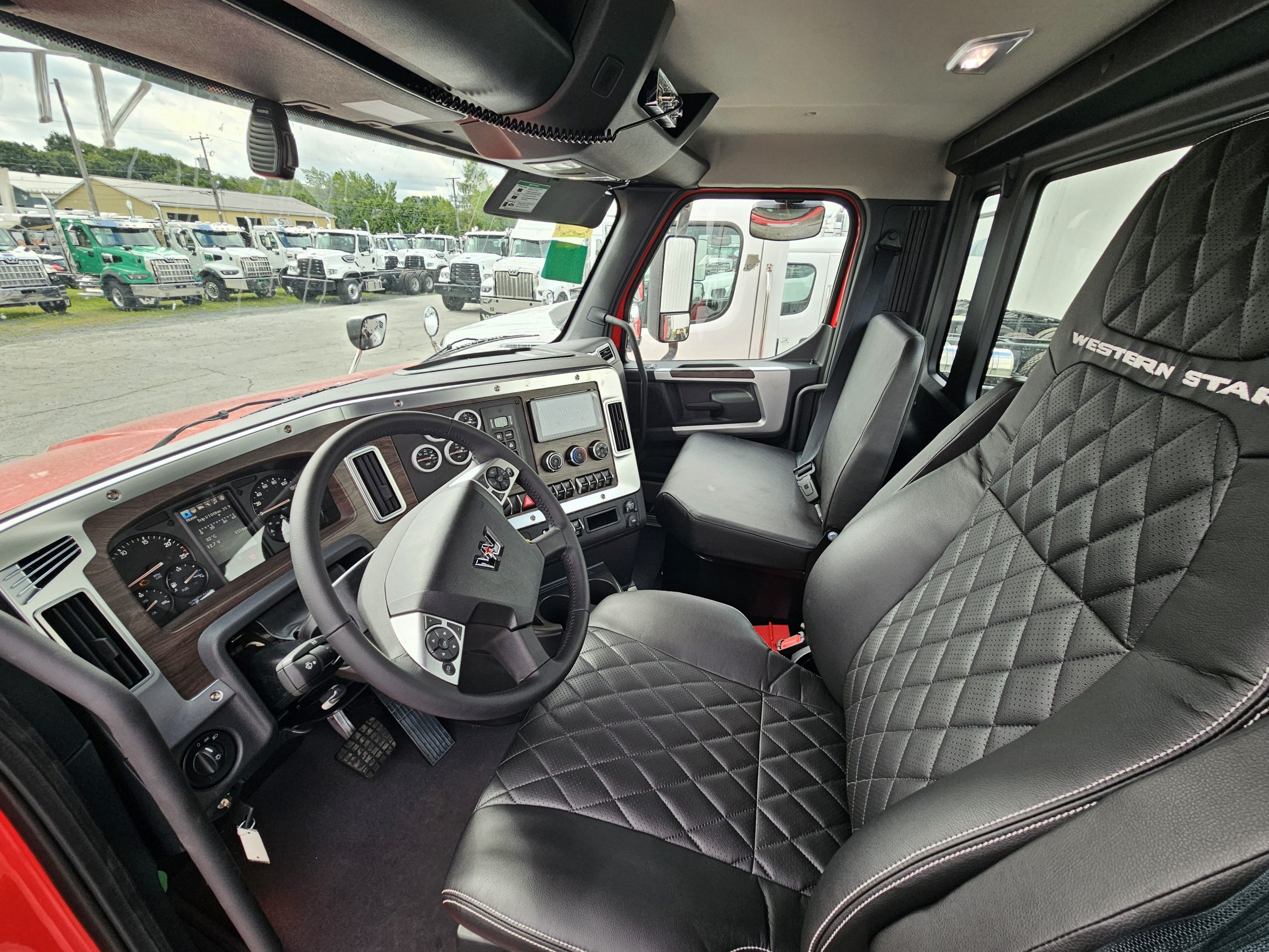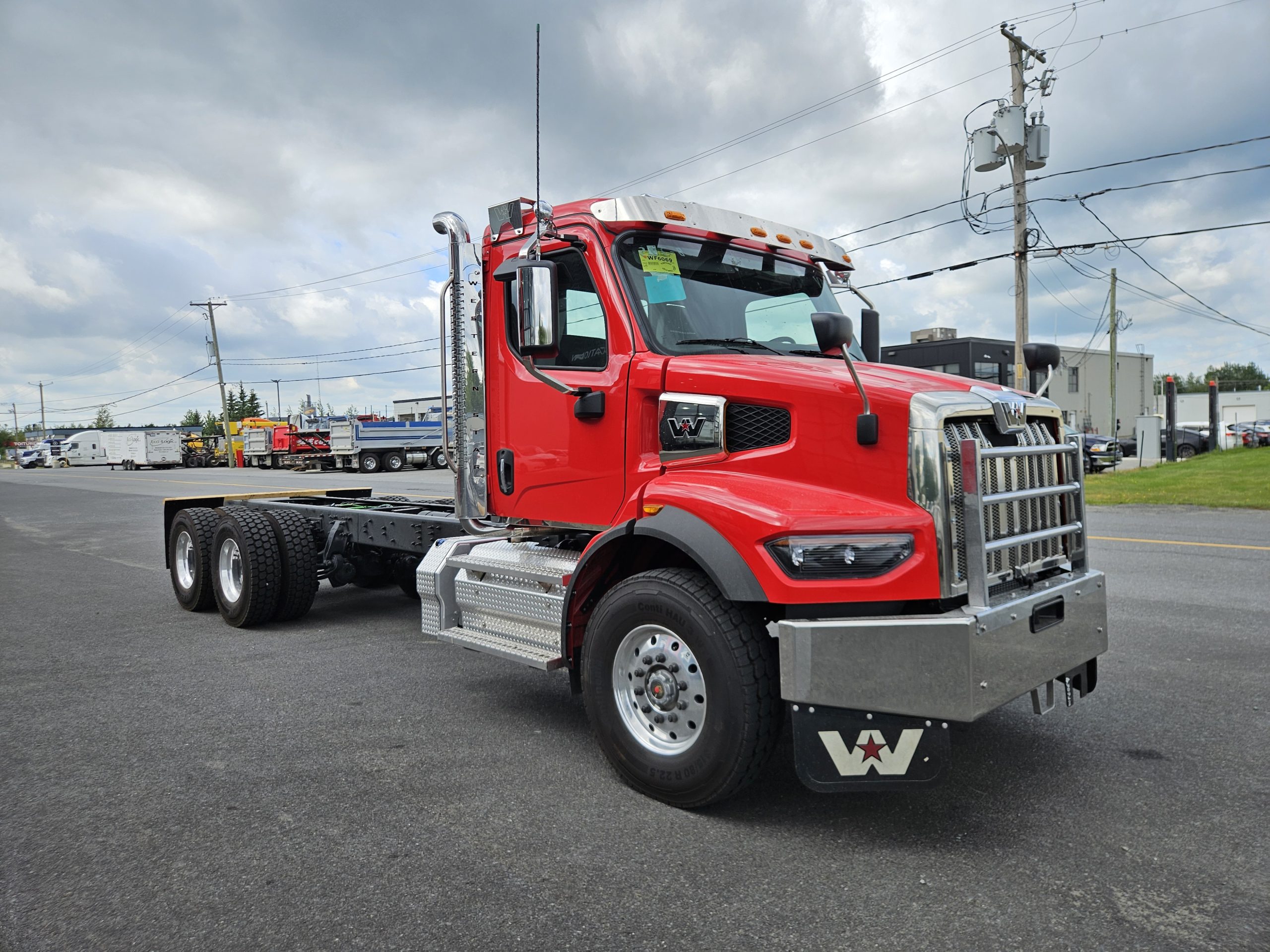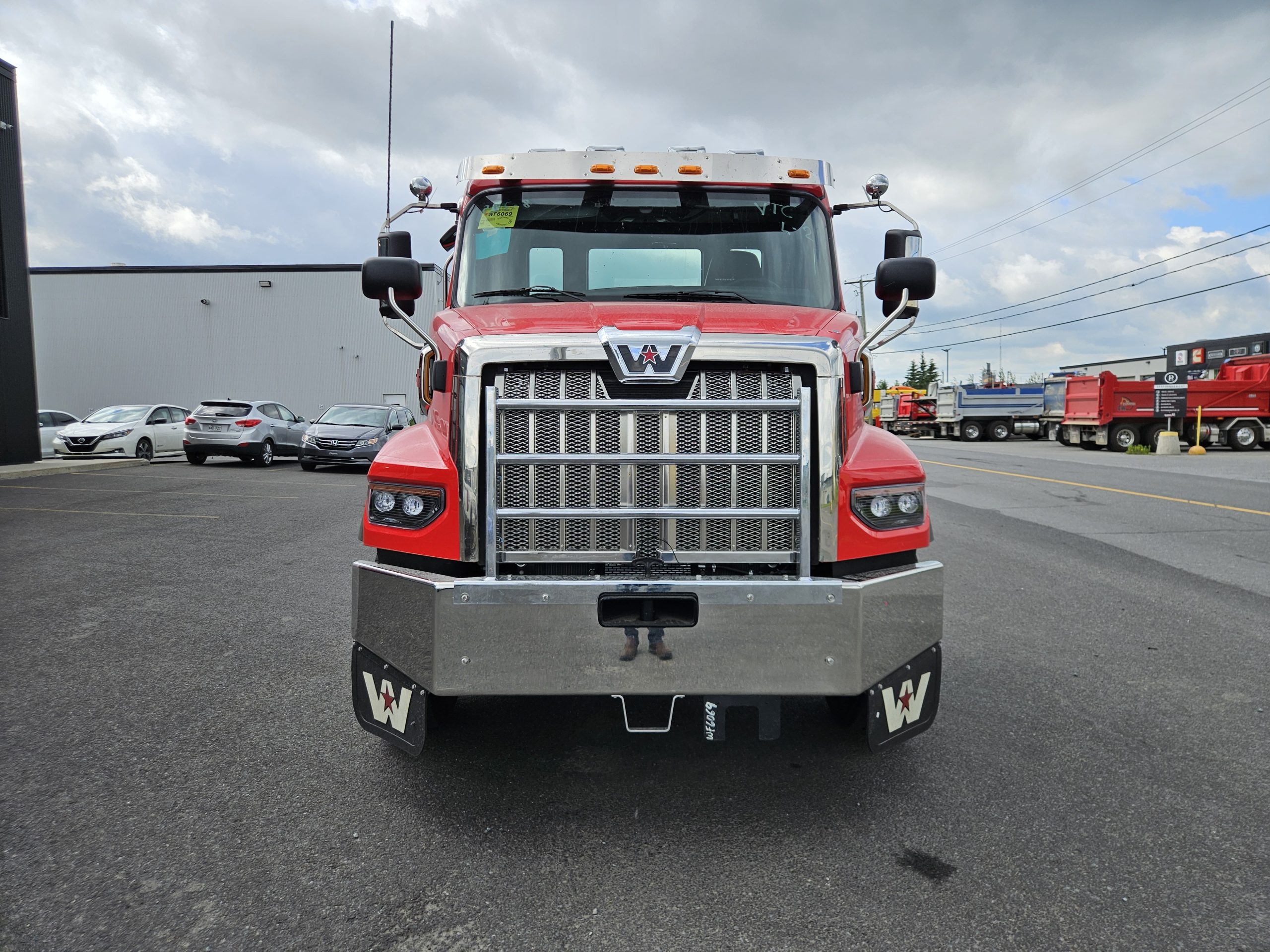2026 Western Star 47X set-back axle, Cummins X12 engine (500 hp, 1 700 LB/FT), Allison 4500RDS automatic transmission, drum brakes, full lock differentials, 100 gallons fuel tank, aluminium wheels with Continental tires, batteries mounted inside of cab, driver seat with air suspension, heated and ventilated. This truck will soon be equipped with a Tardif et fils lift axle, a step tool box under the cab and a Lagacé et frère dump box. Please contact one of our sales representative for more informations.