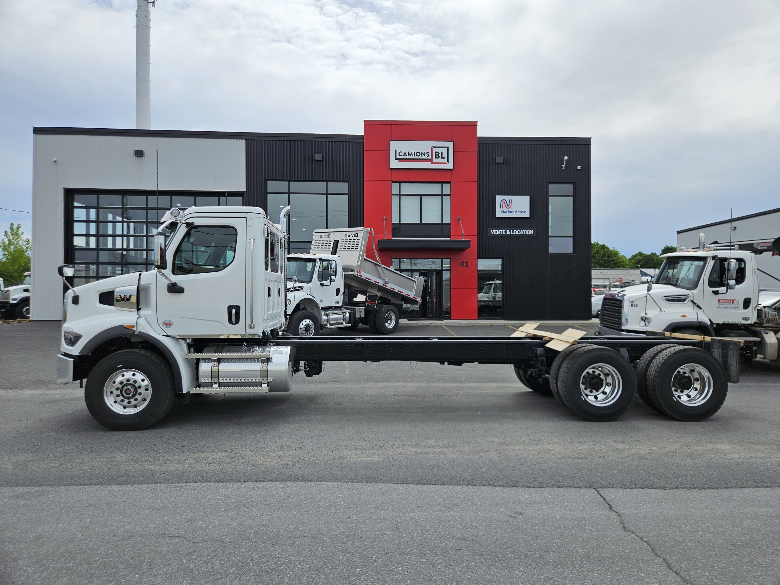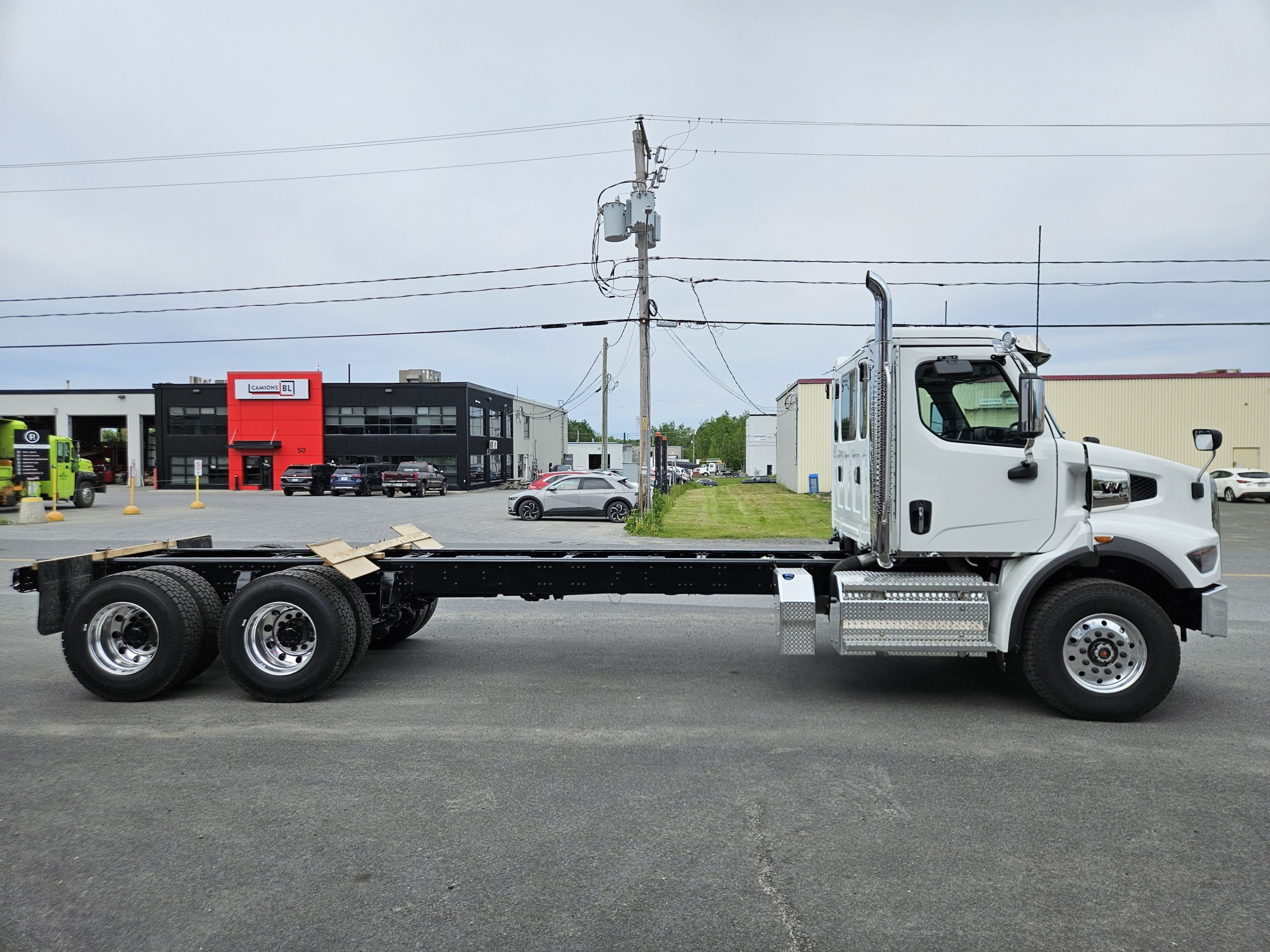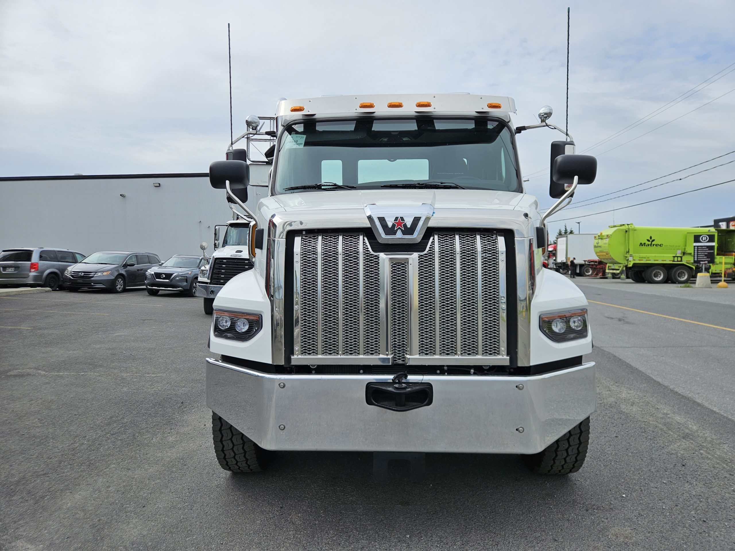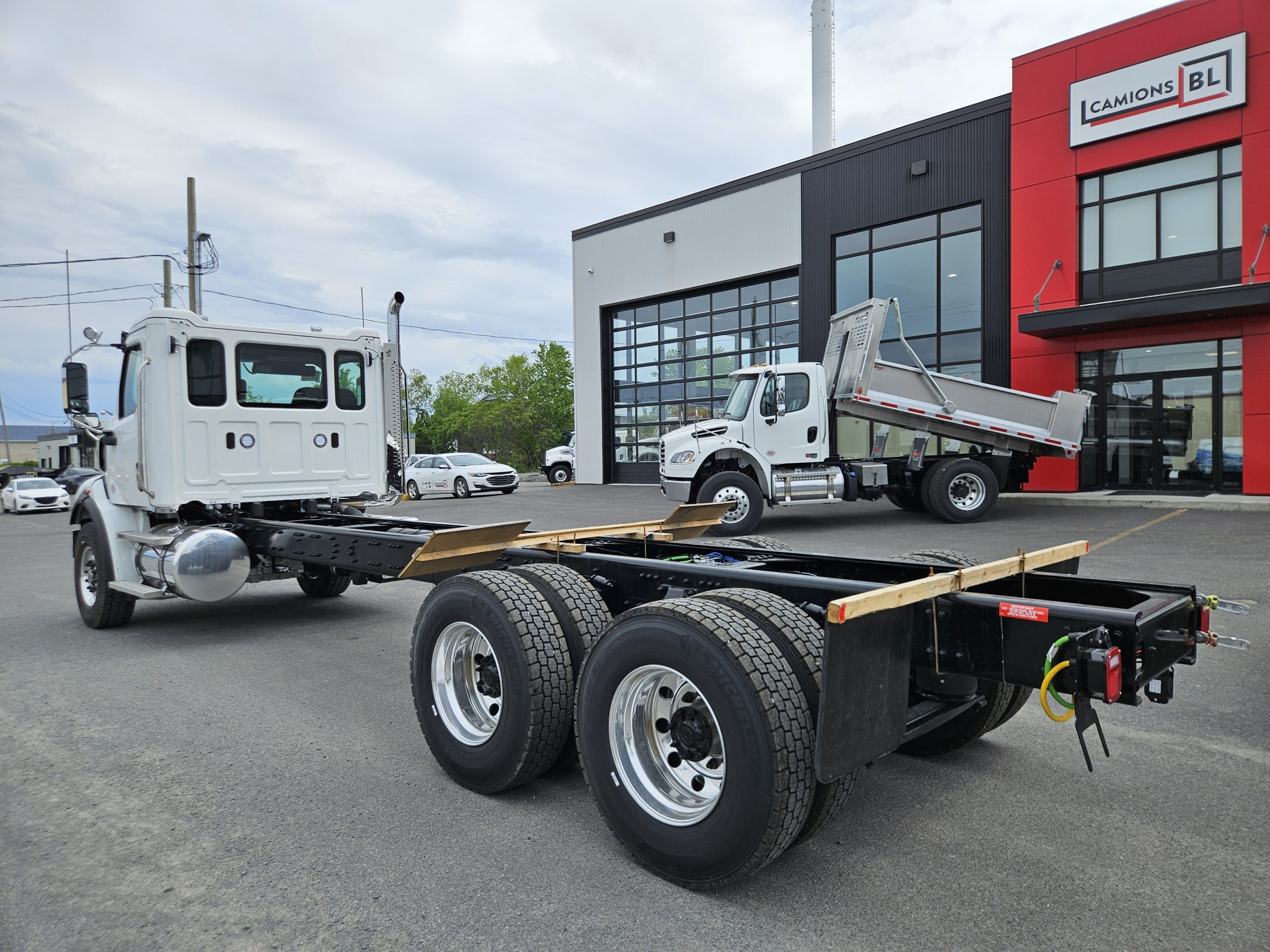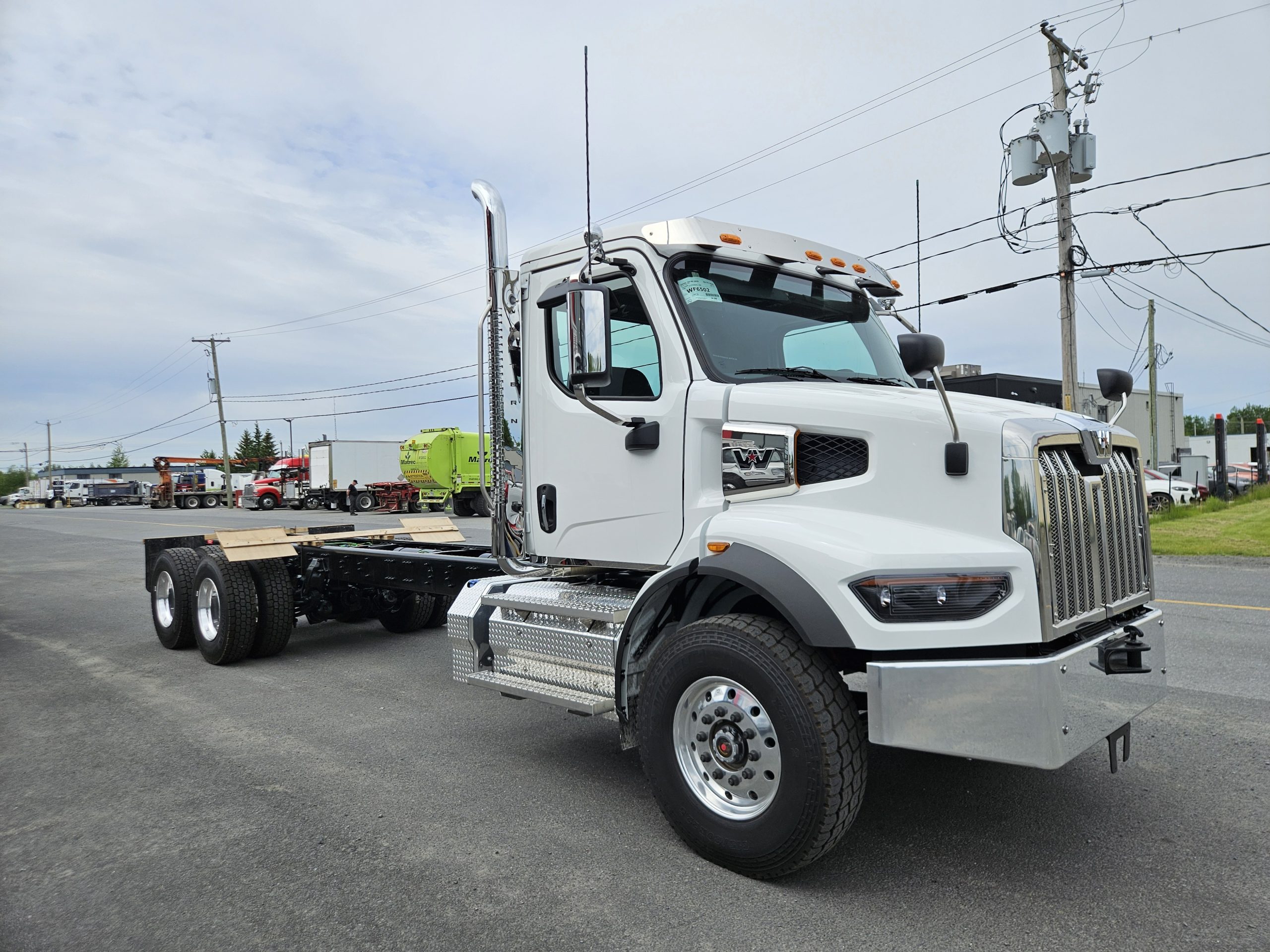 2026 Western Star 47X set-back axle, Detroit Diesel DD13 engine (525 hp, 1 850 LB/FT), Allison 4500RDS automatic transmission, ready for PTO installation, batteries mounted inside of cab, drum brakes, 10 aluminium wheels with Michelin tires, full lock differentials, 100 gallons fuel tank, heated and ventilated driver seat with air suspension. Please contact one of our sales representatives for more information.