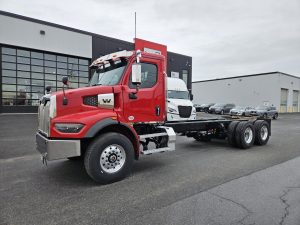 2026 Western Star 47X set-back axle, Detroit Diesel DD13 engine (525 hp, 1 850 LB/FT), Allison 4500RDS automatic transmission, ready for PTO installation, batteries mounted inside of cab, drum brakes, 10 aluminium wheels with Michelin tires, full lock differentials, 100 gallons fuel tank, heated and ventilated driver seat with air suspension. 2 units in preparation, they will be equipped with lift axles (SM Suspension or Tardif et fils) and 24′ Chagnon (Durabac) roll-off. Please contact one of our sales representatives for more information. Please note that the 3 first pictures are for illustration purposes only.