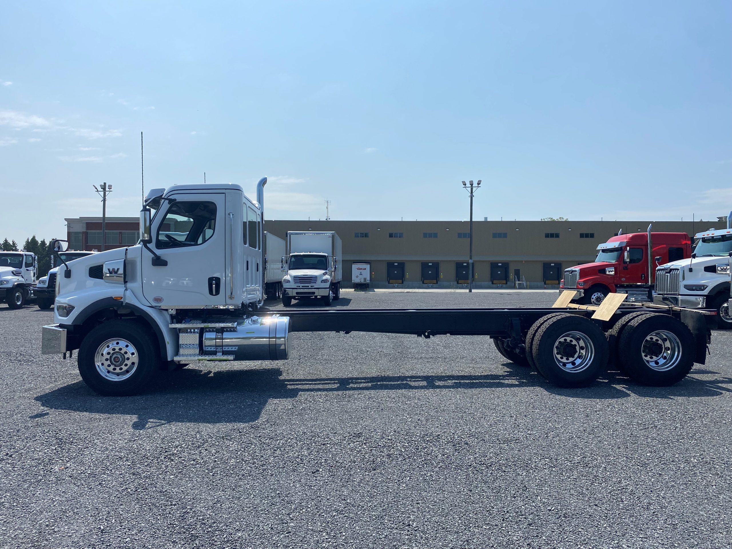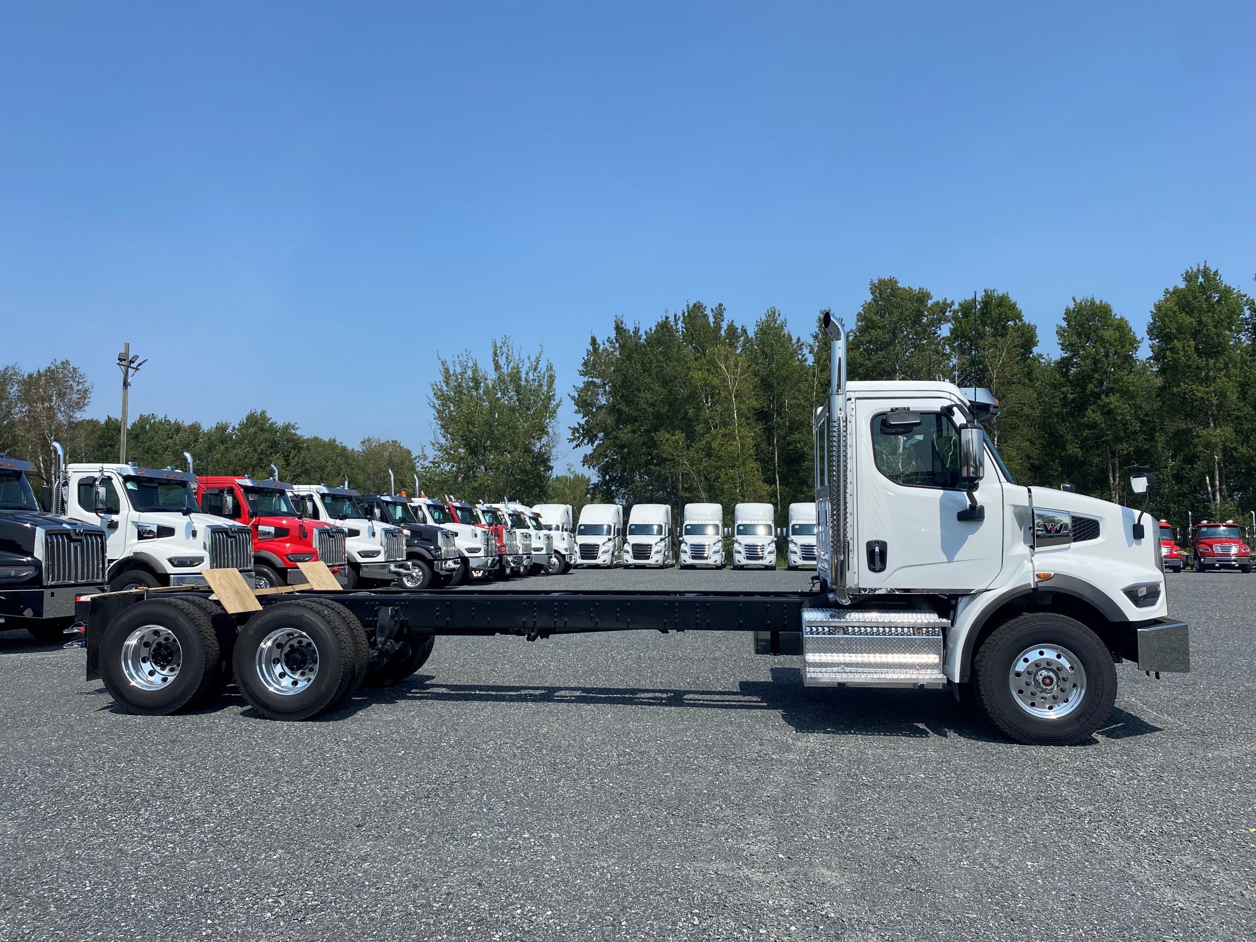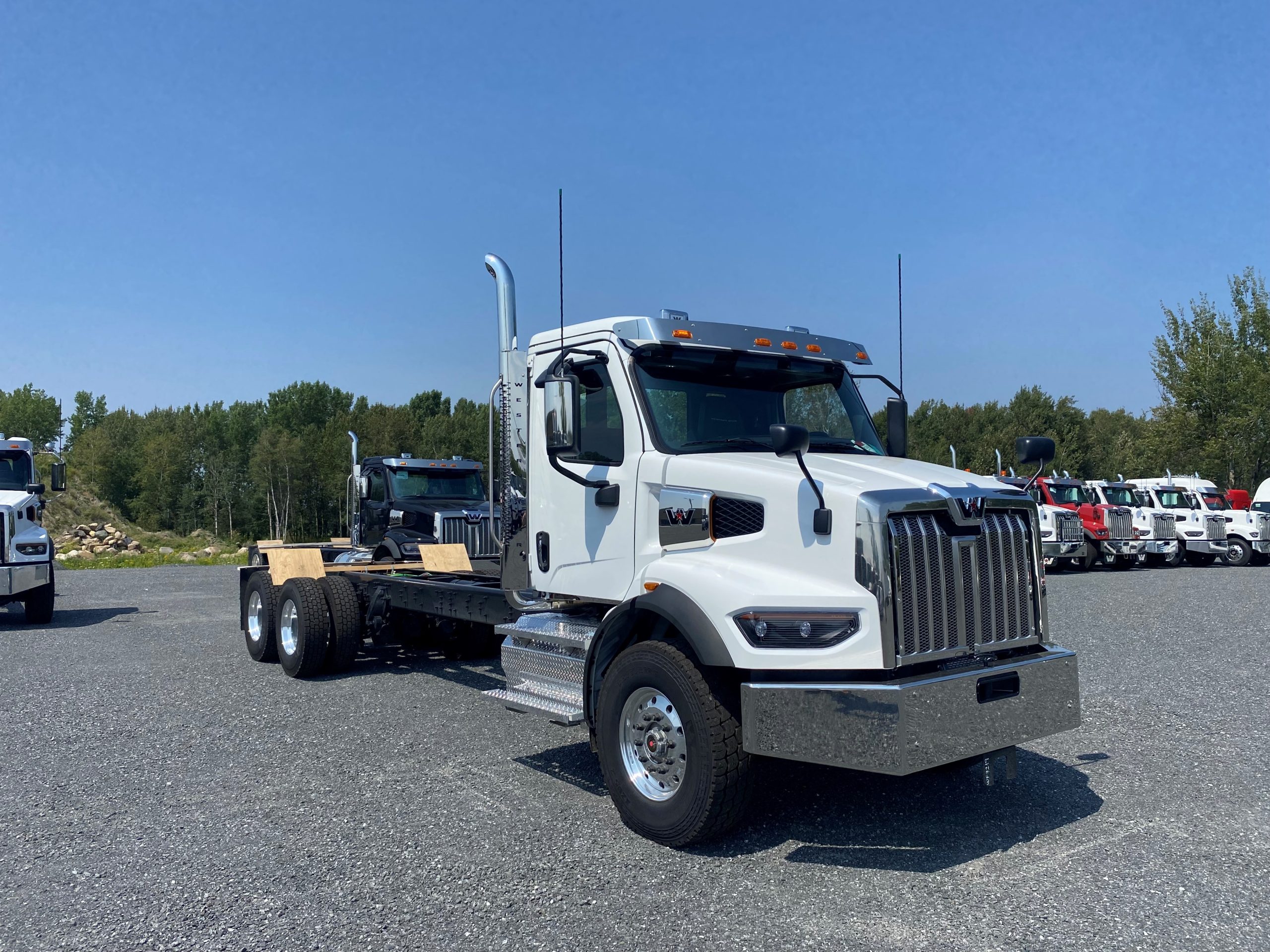 2026 Western Star 47X set-back axle, Detroit Diesel DD13 engine (450 hp, 1 650 LB/FT), Allison 4500RDS automatic transmission, ready for PTO installation, batteries mounted inside of cab, drum brakes, 10 aluminium wheels with Michelin tires, full lock differentials, 100 gallons fuel tank, heated and ventilated driver seat with air suspension. Please contact one of our sales representatives for more information.