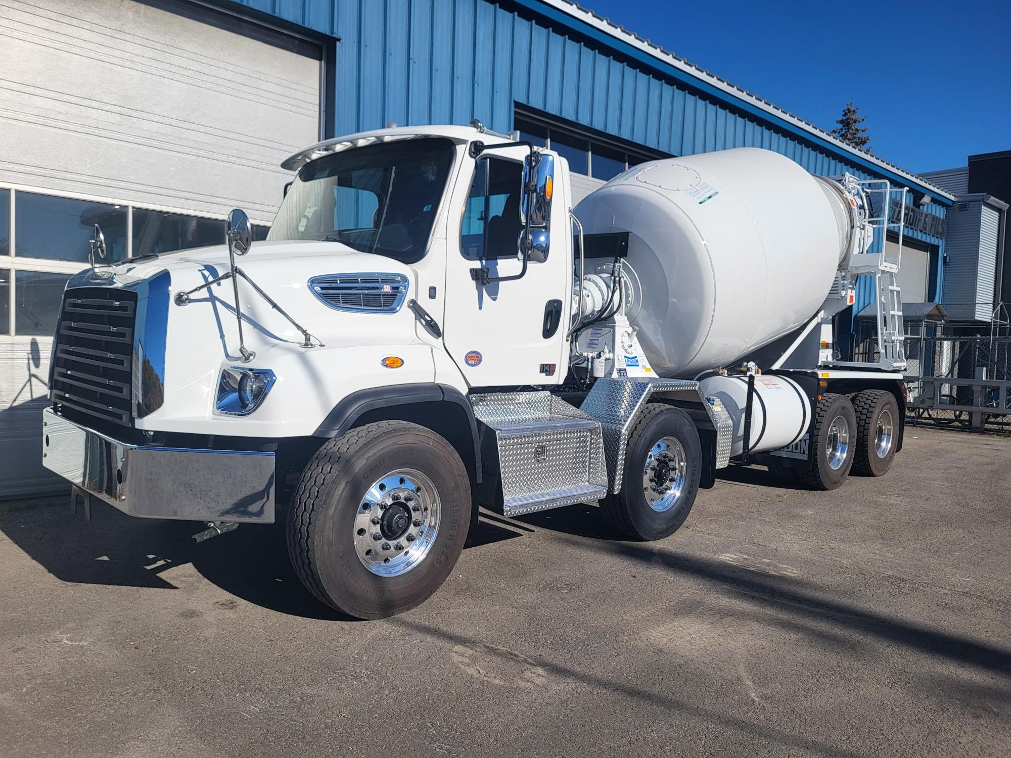 2026 Freightliner 114SD Plus, Detroit DD13 engine (470 hp, 1 650 LB/FT), Allison 4500RDS automatic transmission, drum brakes, full lock differentials, 60 gallons fuel tank, aluminium wheels with Continental tires. We have 5 units in stock, currently being equipped with London Machinery 10.5 yards mixer ans Tardif et fils hybrid directionnal axles. Please contact one of our sales representative for more informations.