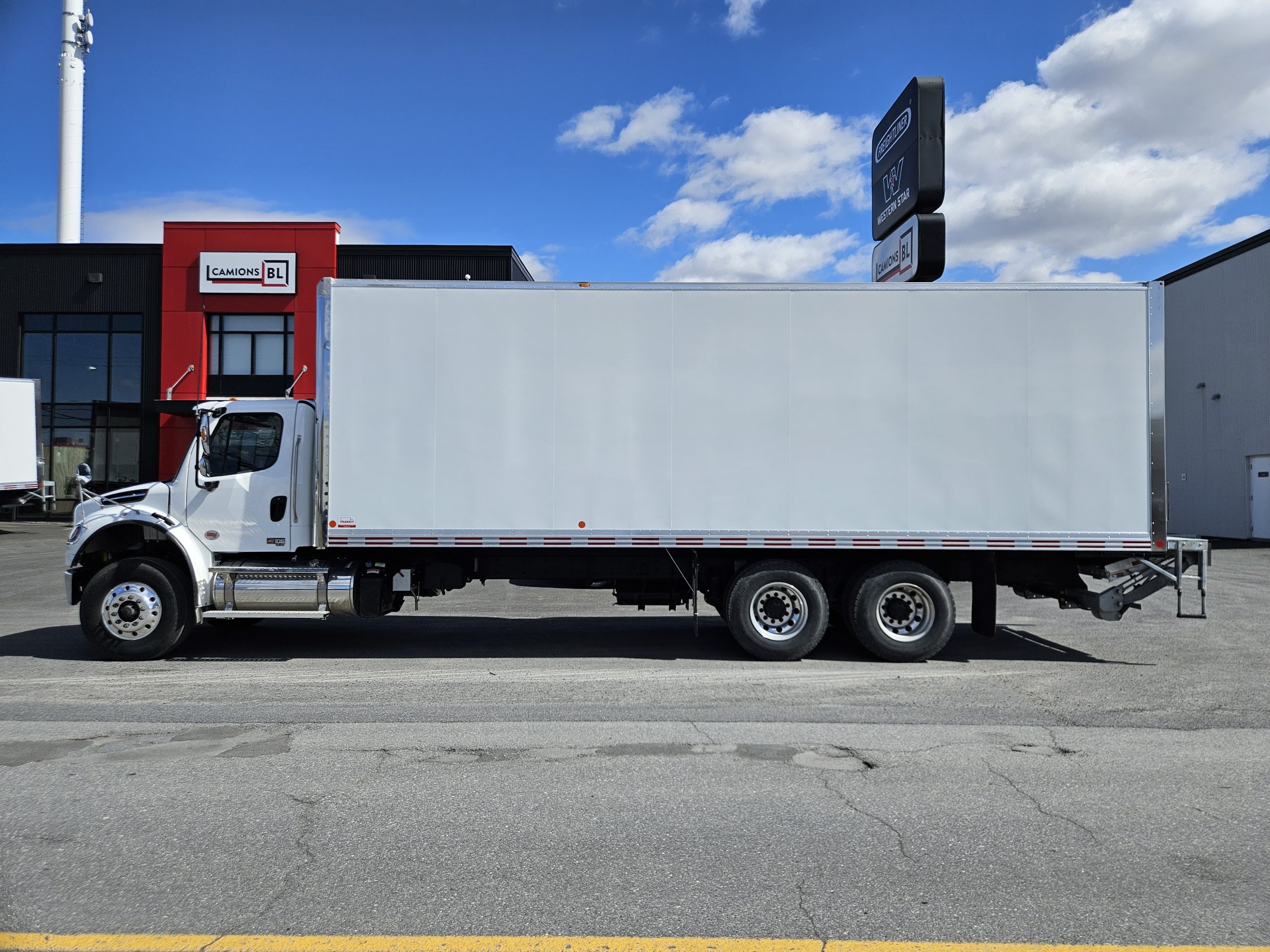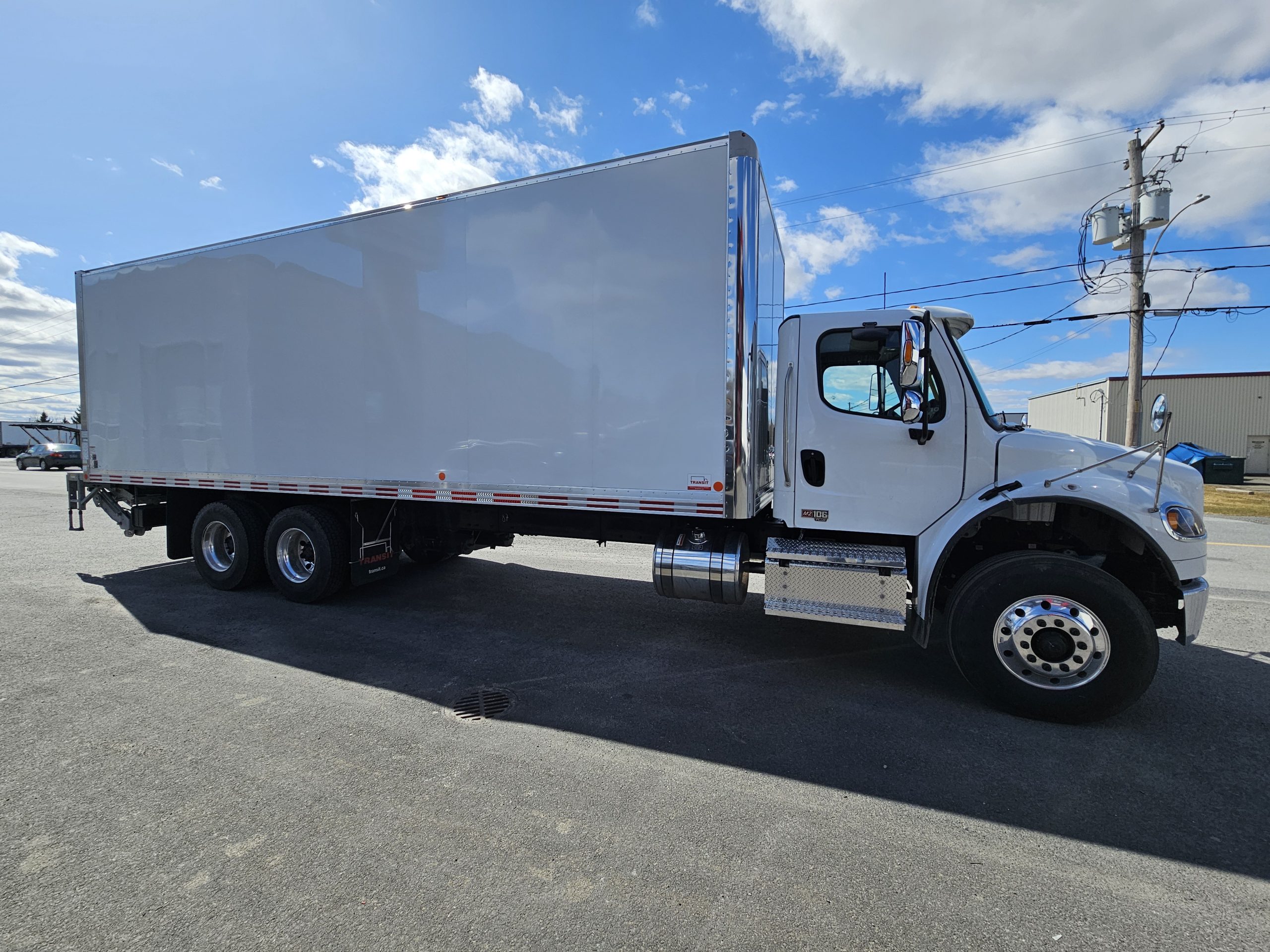 2026 Freightliner M2106 Plus, Detroit Diesel DD8 engine (350 hp, 1,050 LB/FT), Espar engine heater, Allison 3000RDS transmission ready for PTO installation, full lock differentials, 10 aluminum wheels with Michelin tires, 2 fuel tanks (100 & 50 gallons), those trucks are equipped with a 28-foot Transit Classik dry box and a Maxon GPTB-4 liftgate (capacity 4,000 lbs). Feel free to contact one of our sales representatives for more information.