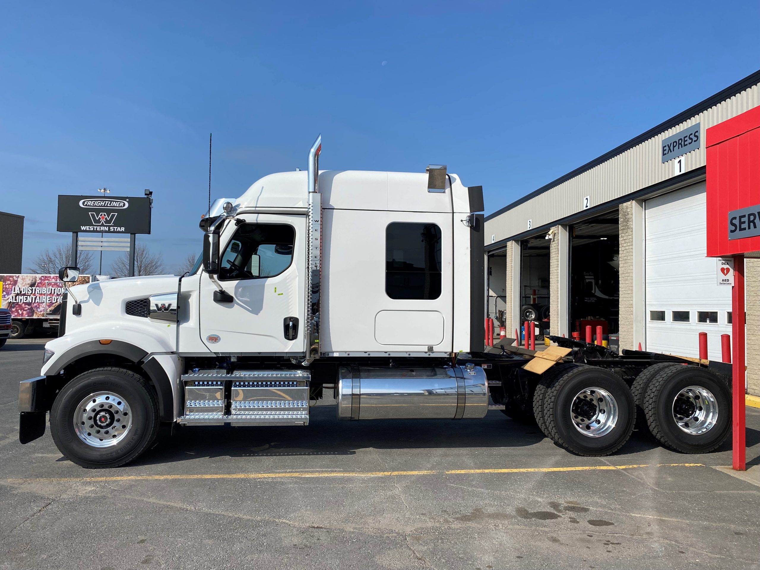 2026 Western Star 49X set-front axle with the power hood, Cummins X15 engine (565 hp, 1 850 LB/FT), 18-speed manual transmission, ready for the installation of two PTO, drum brakes, full lock differentials, Holland FW35 no-tilt fifth wheel, two 150 gallons fuel tanks, 10 aluminium wheels with Continental tires, 72 inches midroof sleeper, HVAC bunk heating and air conditionner, leather seats with air suspension, heated and ventilated. This unit is ready to be equipped for your needs! Please contact one of our sales representative for more informations.