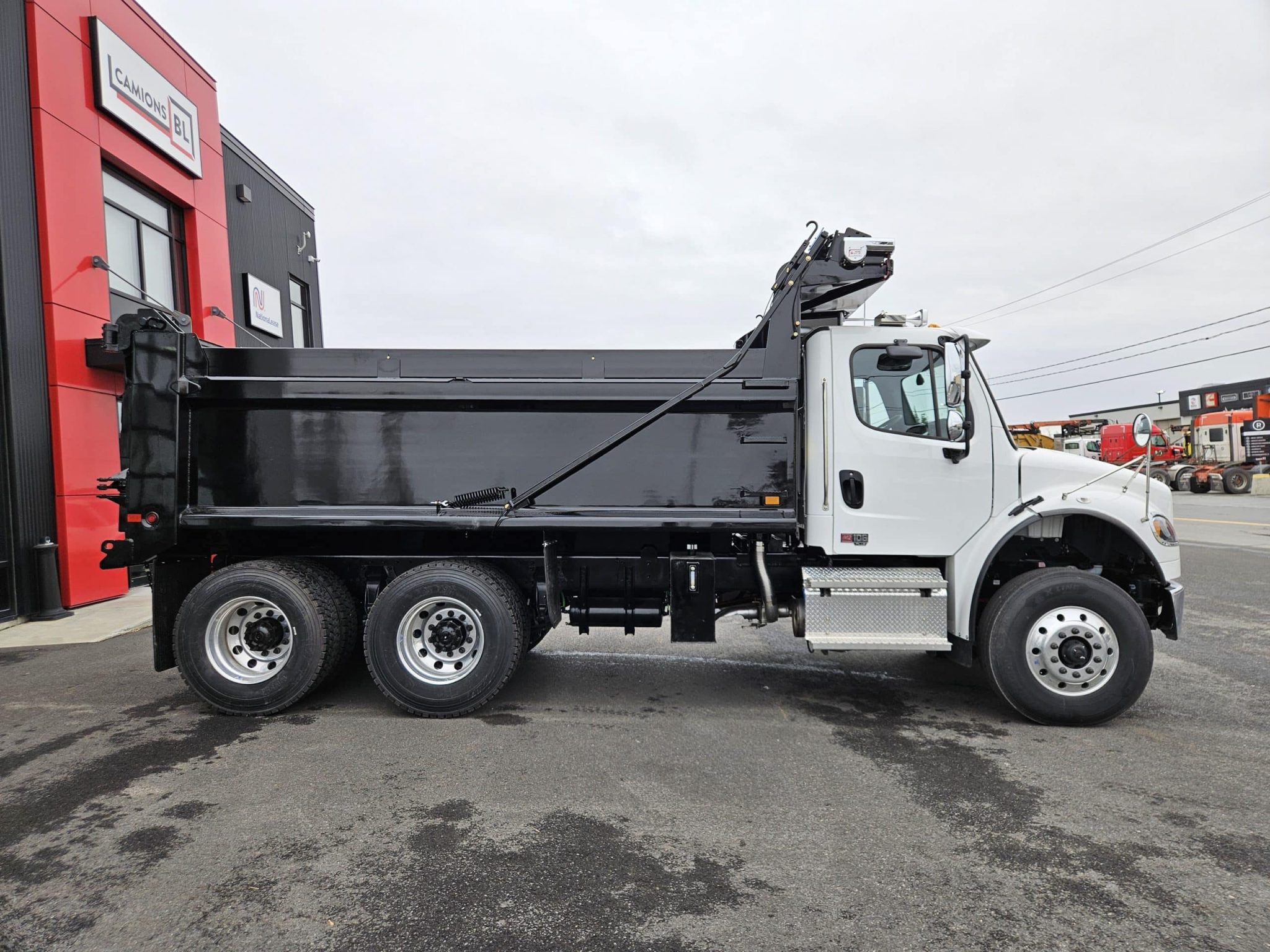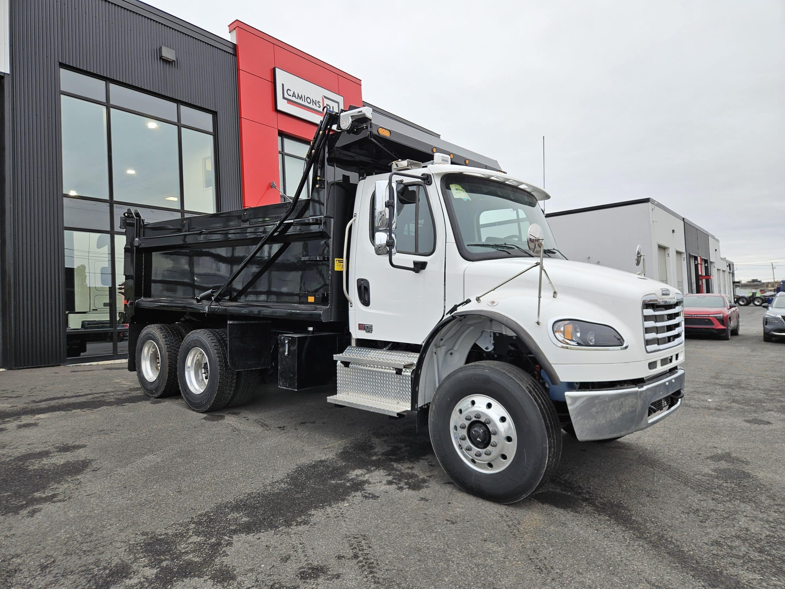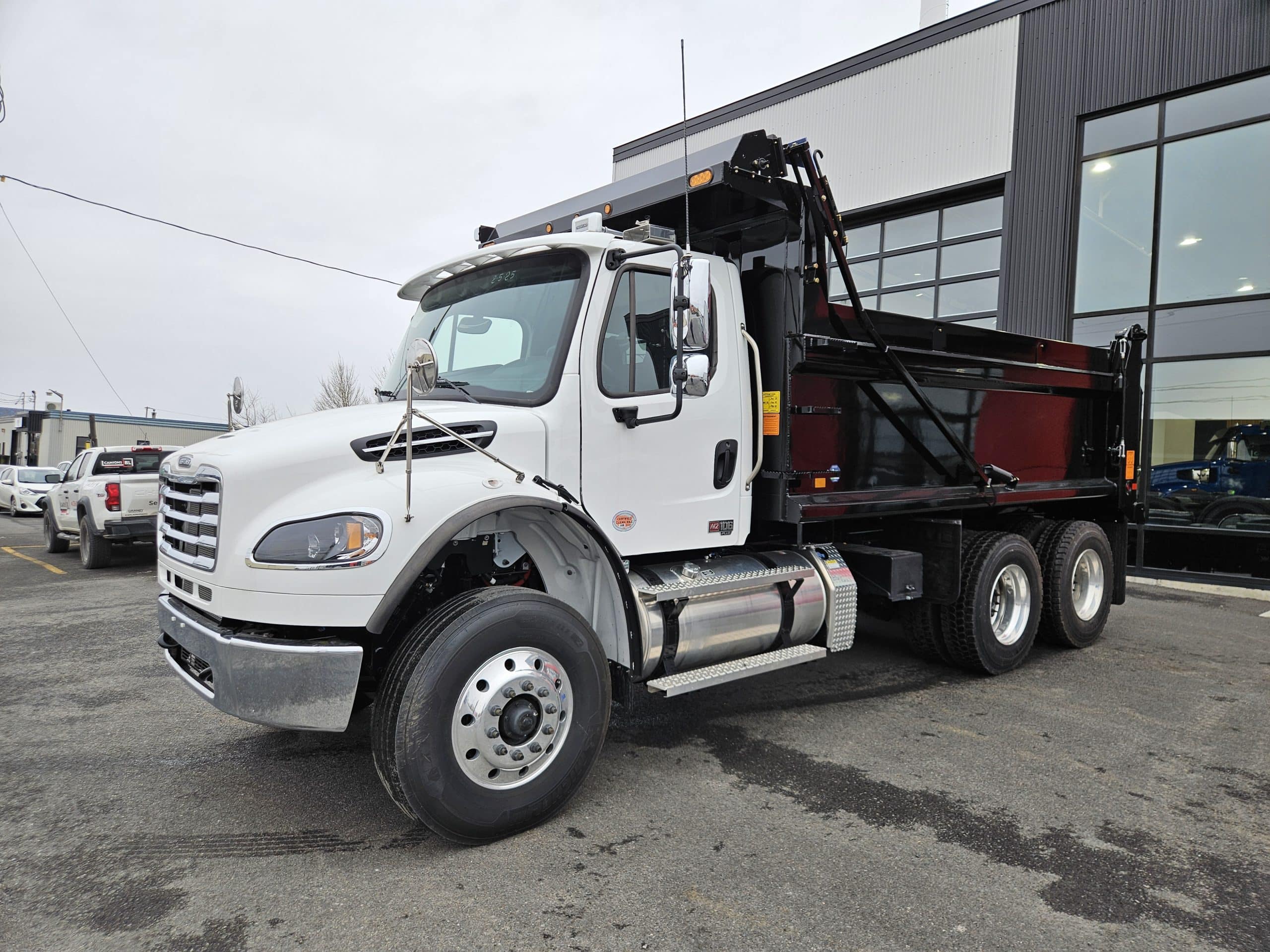 2026 Freightliner M2106 Plus, Detroit Diesel DD8 engine (350 hp, 1,050 LB/FT), Allison 3000RDS transmission, drum brakes, 10 aluminum wheels with Michelin tires, 100 gallons fuel tank, driver seat with air suspension, fixed passenger seat. This unit is equipped with a Lagacé et frère LF-400 15,5 feet dump box. Please contact one of our sales representatives for more information.