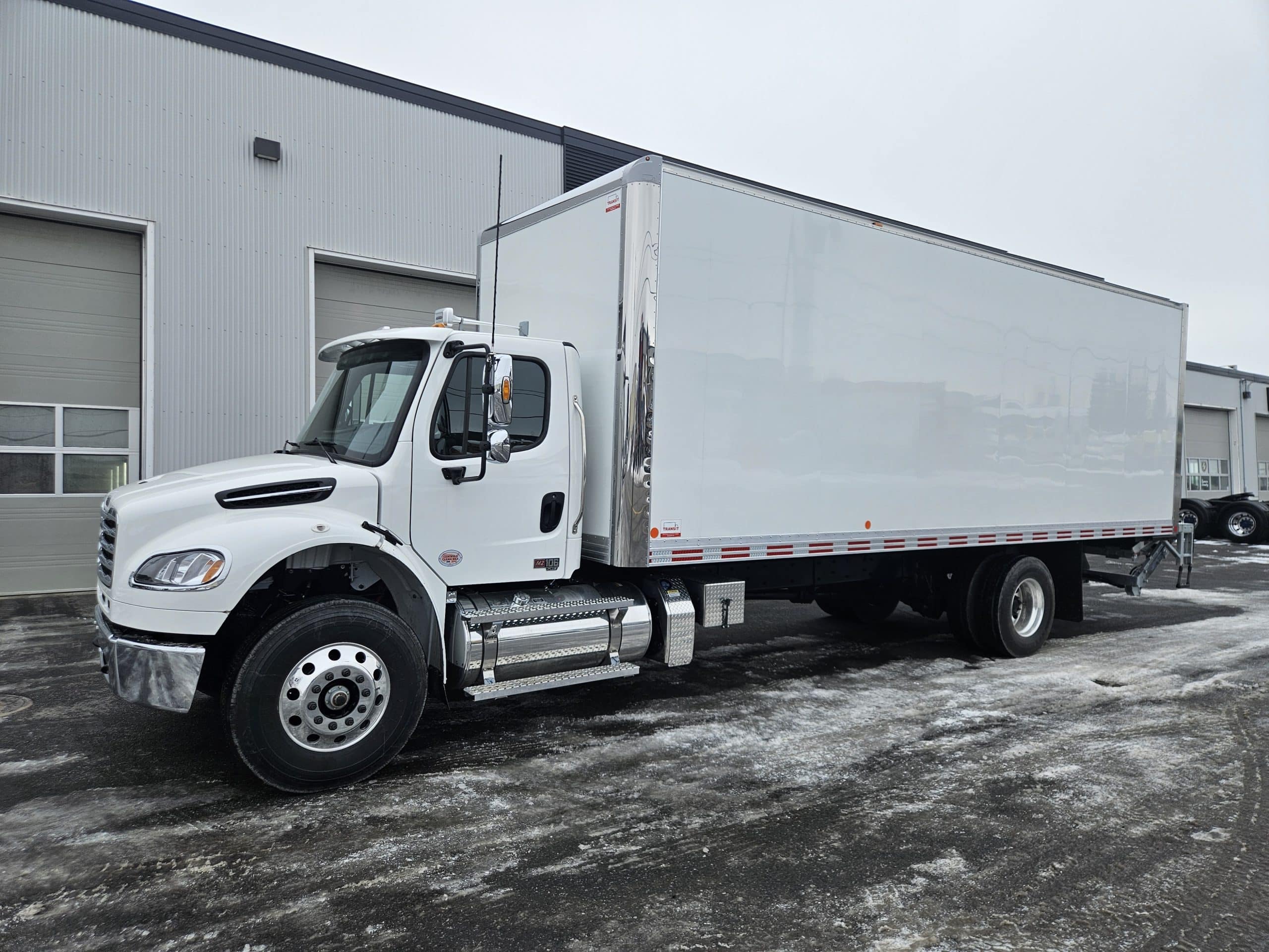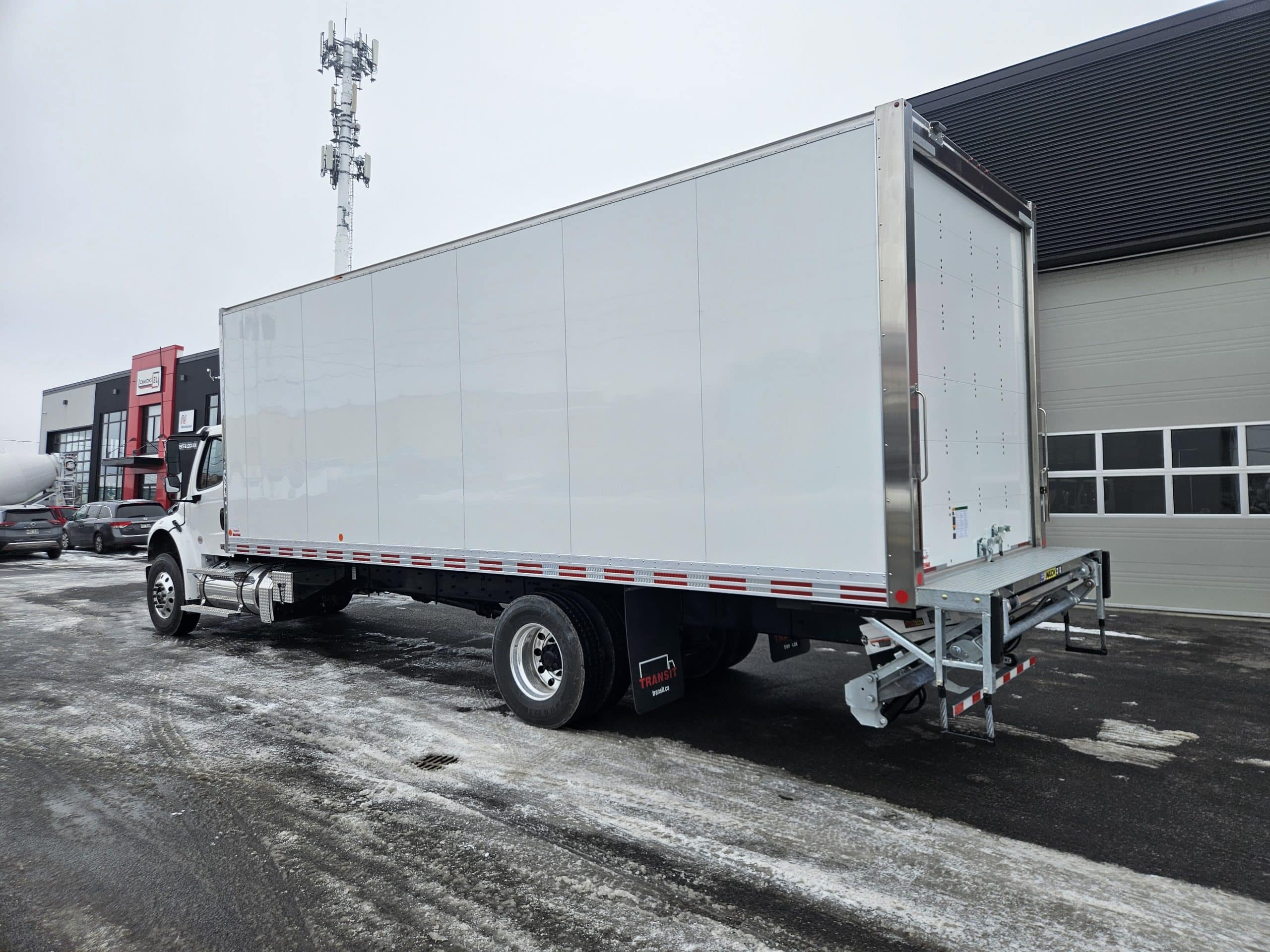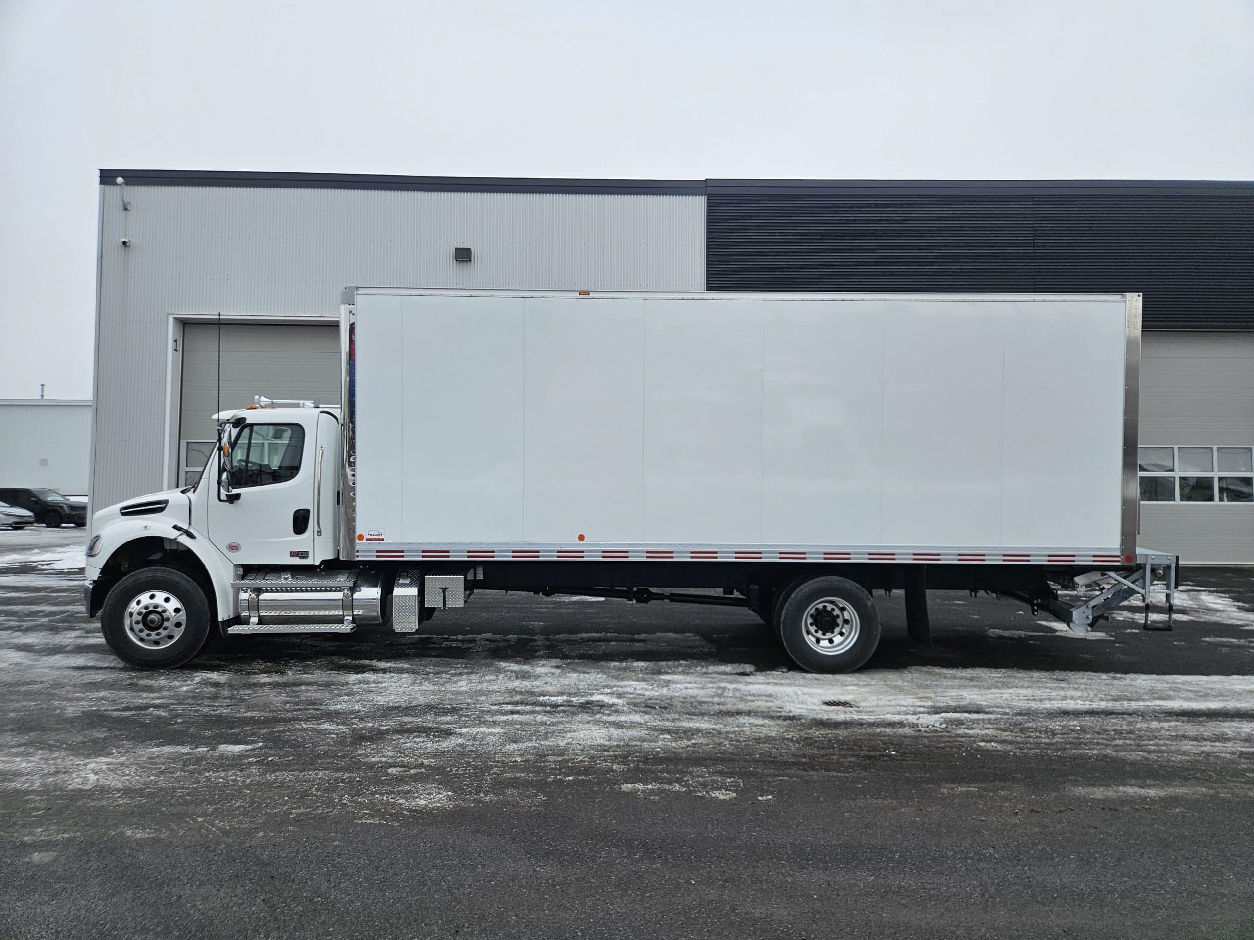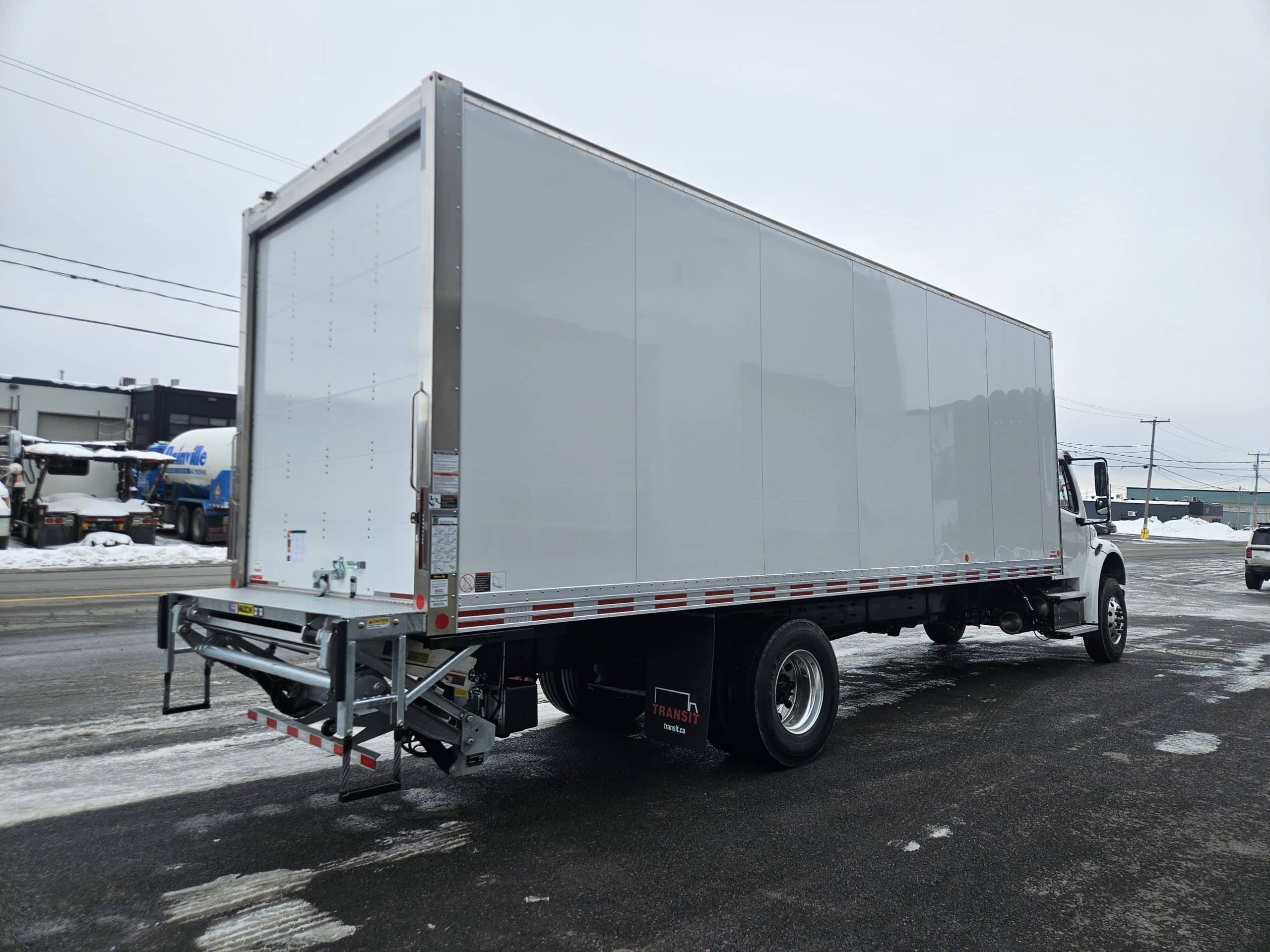 2026 Freightliner M2106 Plus, Detroit Diesel DD8 engine (350 hp, 1 050 LB/FT), Allison 3000RDS automatic transmission, ready to have a PTO mounted, 6 aluminum wheels with Michelin tires on front and Continental on back, 100 gallons fuel tank, drum brakes. Those units are equipped with a Fourgons Transit Classik 26′ dry box and a Maxon GPTB-3 lift gate (capacity 3 000 lbs). Please contact one of our sales representatives for more information.